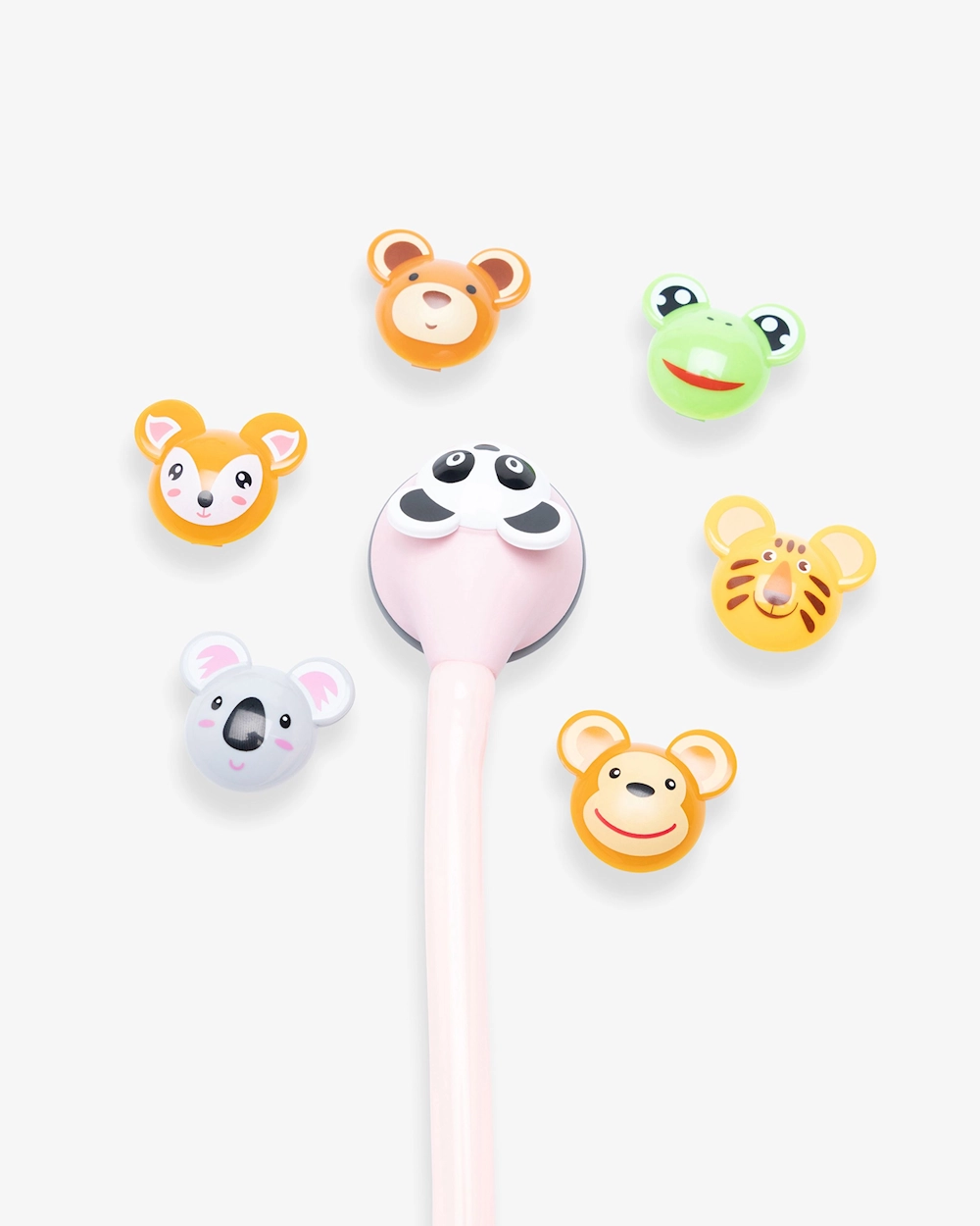 - Sju djur att fästa på bröststycket: Panda, koala, apa, björn, groda, rådjur och tiger