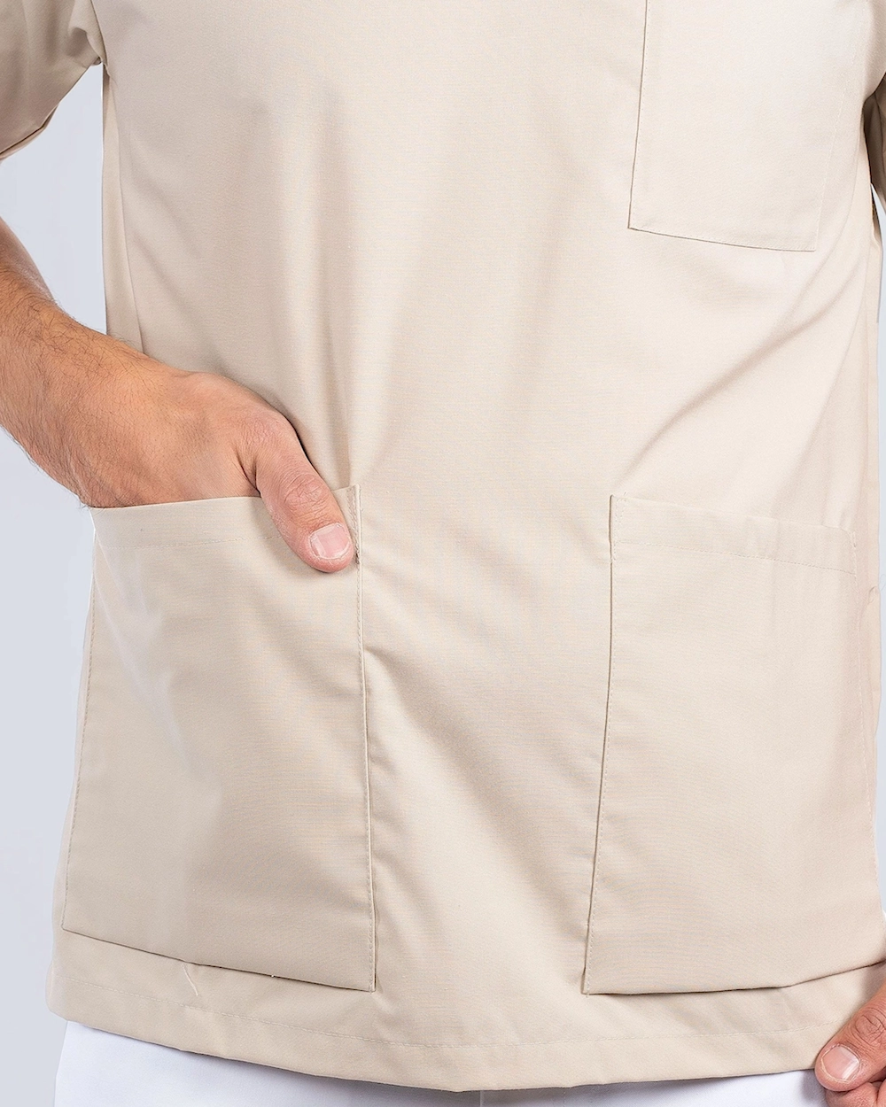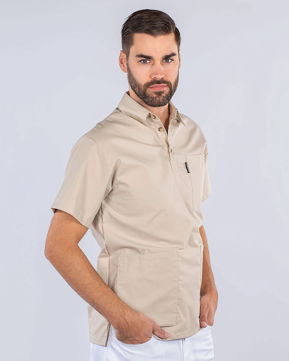 Bekväm bussarong med krage i unisex-modell. Bussarongen har bröstficka samt två höftfickor med gott om plats för diverse arbetsredskap. Höftfickorna har dessutom en extra mobilficka samt nyckelhälla. Bussarongen har en god rörelsevidd tack vare sprund i båda sidorna samt ryggveck baktill.