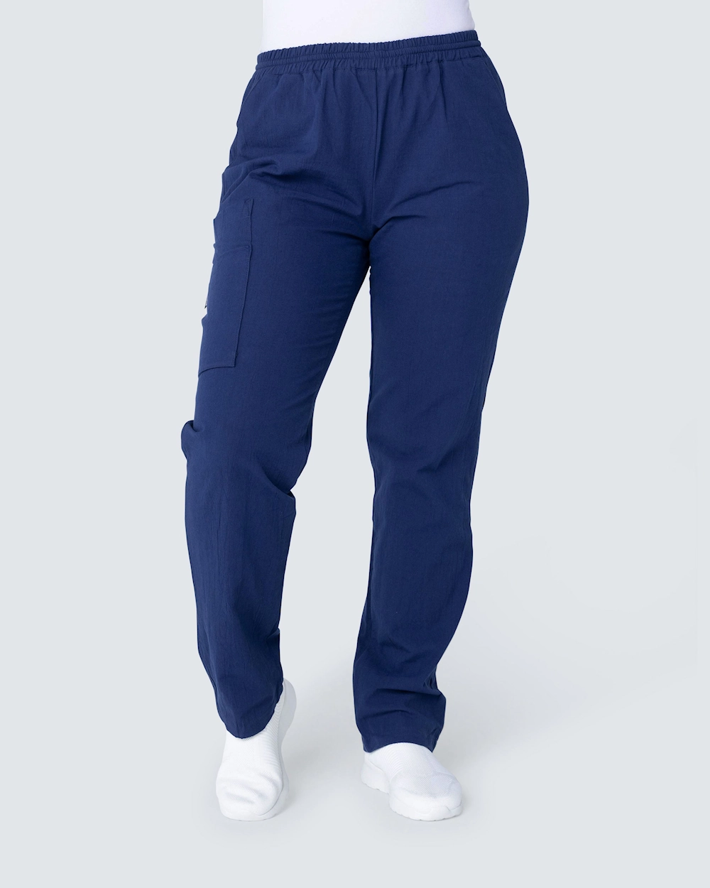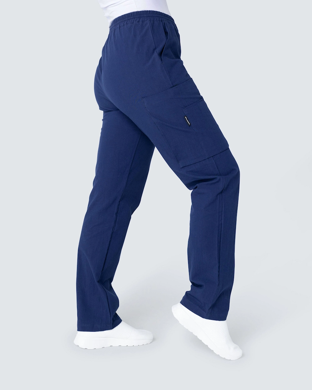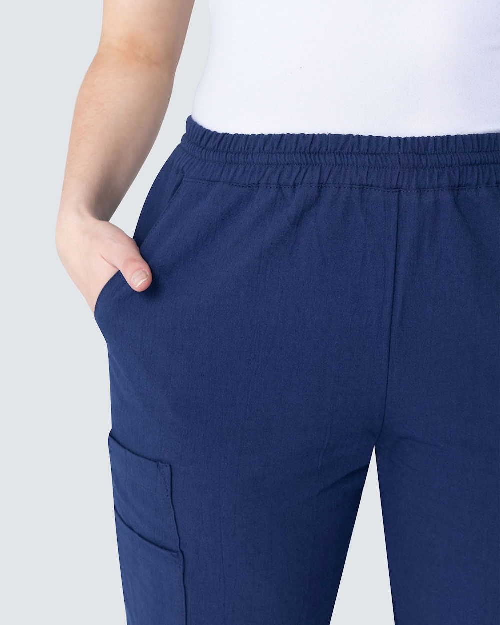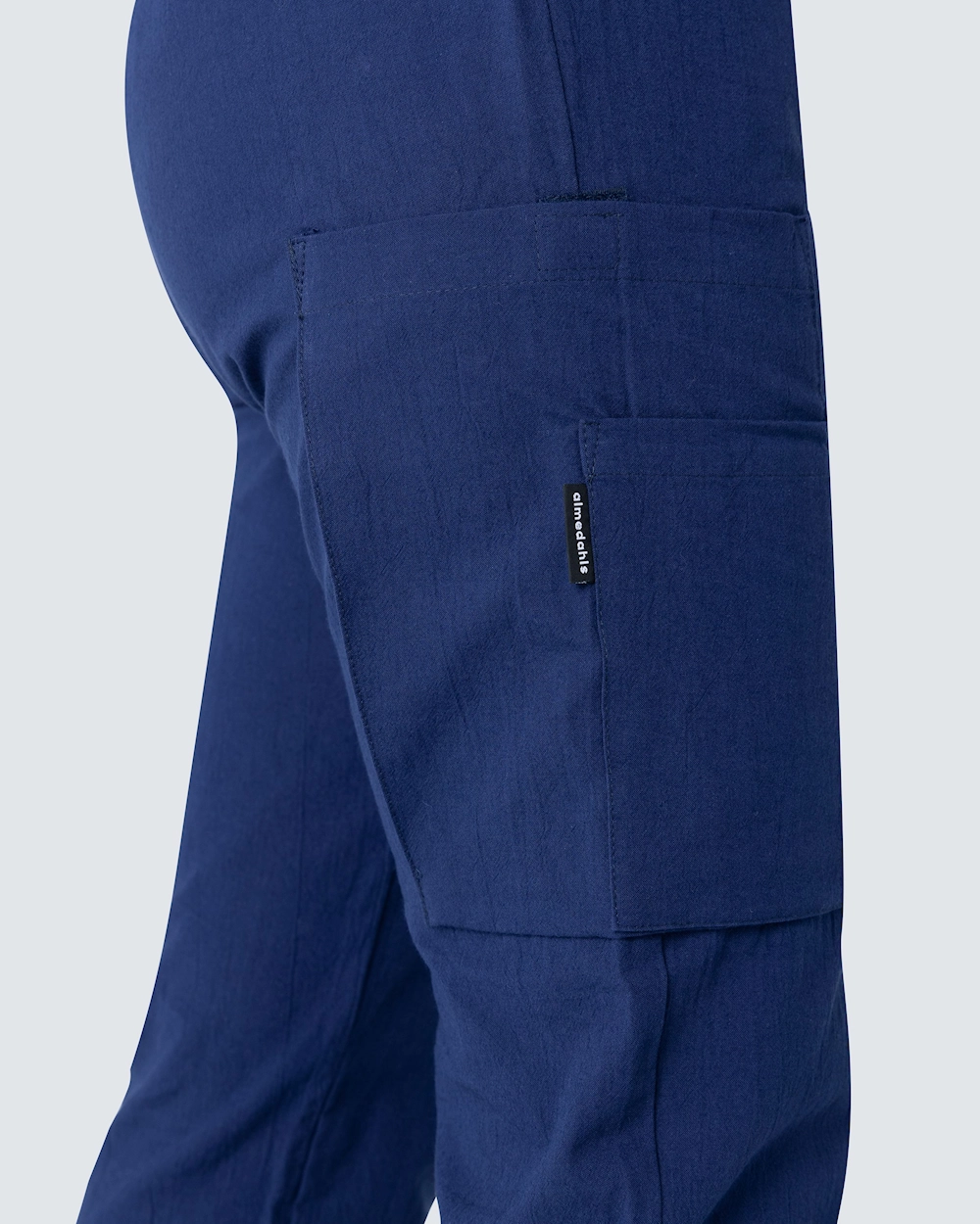 Bekväm resårbyxa i krinklad bomull som ger en sval och skön känsla. Den krinklade bomullen är ett tacksamt material som kräver minimalt med underhållning såsom strykning. Byxorna har både resår och dragsko i midjan vilket ger en perfekt passform.