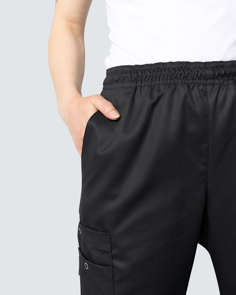 Bekväm arbetsbyxa i miljövänligt Tencel-material. Byxorna har resår i midjan vilket ger en bekväm passform under långa arbetspass.