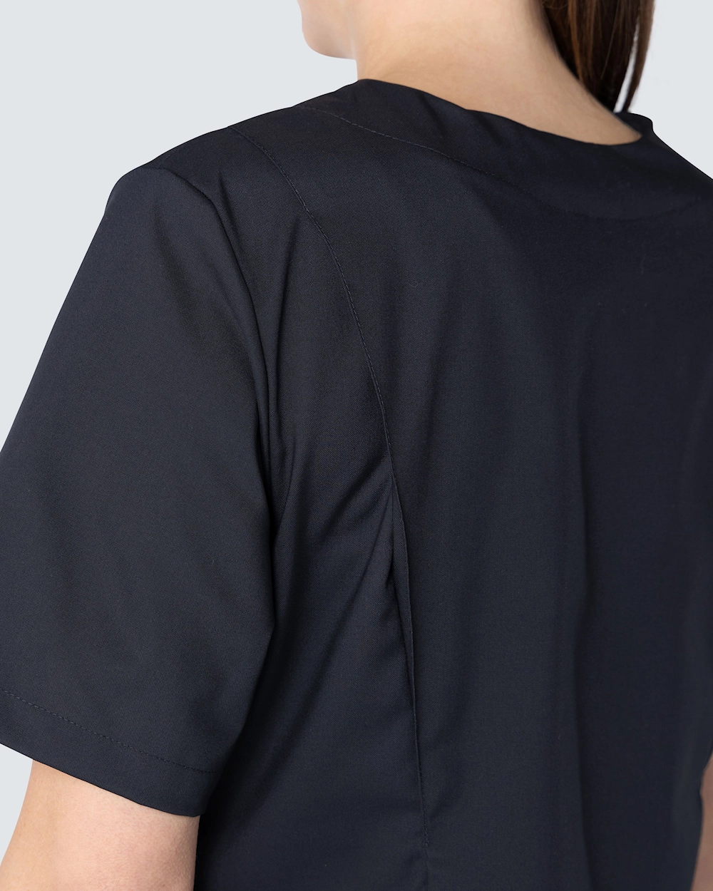Bekväm arbetsblus i lätt insvängd modell som ger en fin passform. Blusen har en dekorativ passpoal längs hals och höftfickor vilket ger en vacker detalj. Blusen har både bröstficka och två höftfickor, med gott om plats för diverse arbetsredskap. Höftfickorna har mobilficka och nyckelhälla för praktisk förvaring av nycklar eller ID-kort.