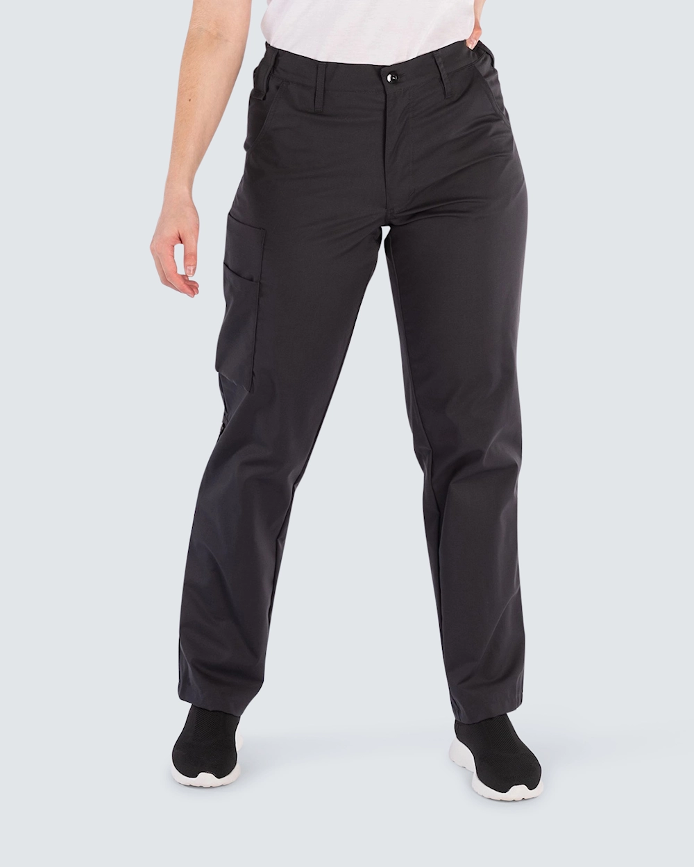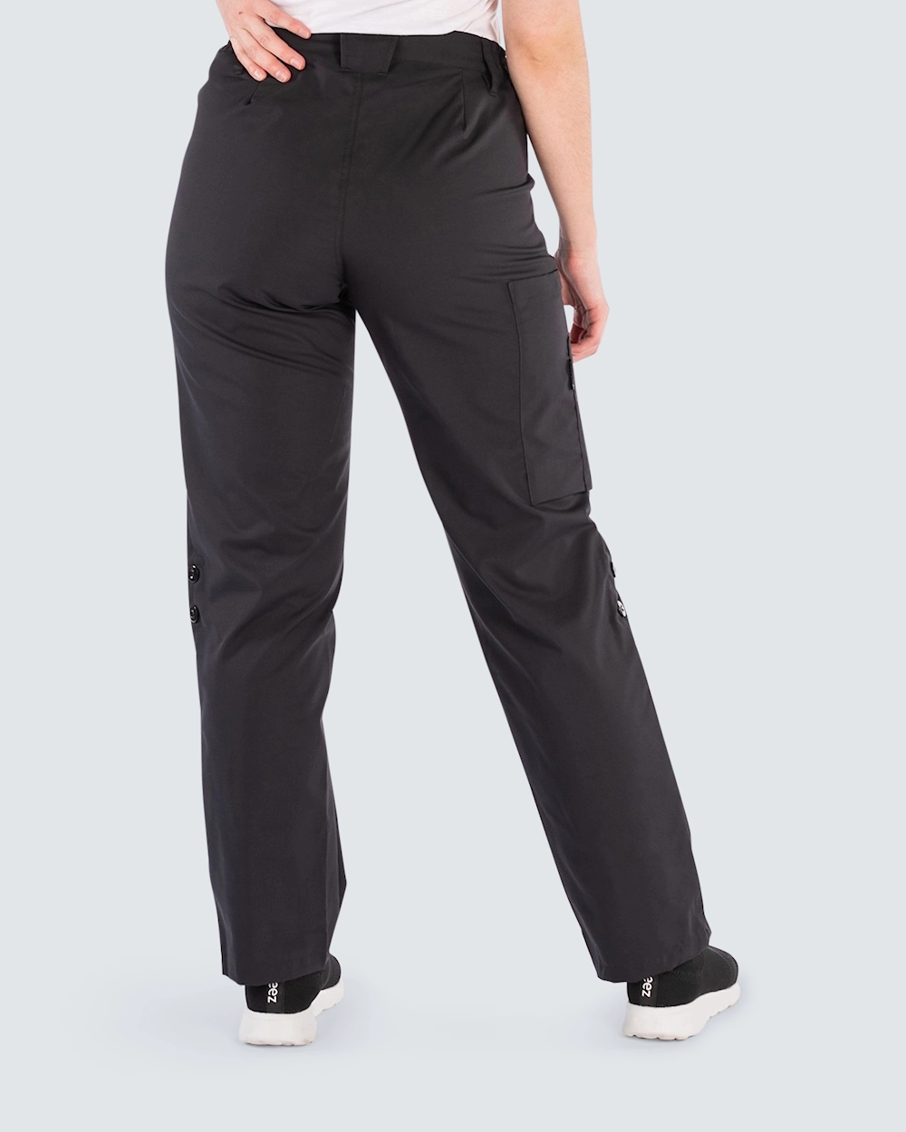 Bekväm arbetsbyxa med resår infällt i sidorna, vilket ger en skön och stretchig passform. Byxan kan du enkelt göra om till en 3/4 byxa genom att vika upp byxbenen och fästa med en knapp. Sidfickor och benficka med extra ficka utanpå ger gott om plats för telefon och diverse arbetsredskap du behöver med dig under arbetspasset.