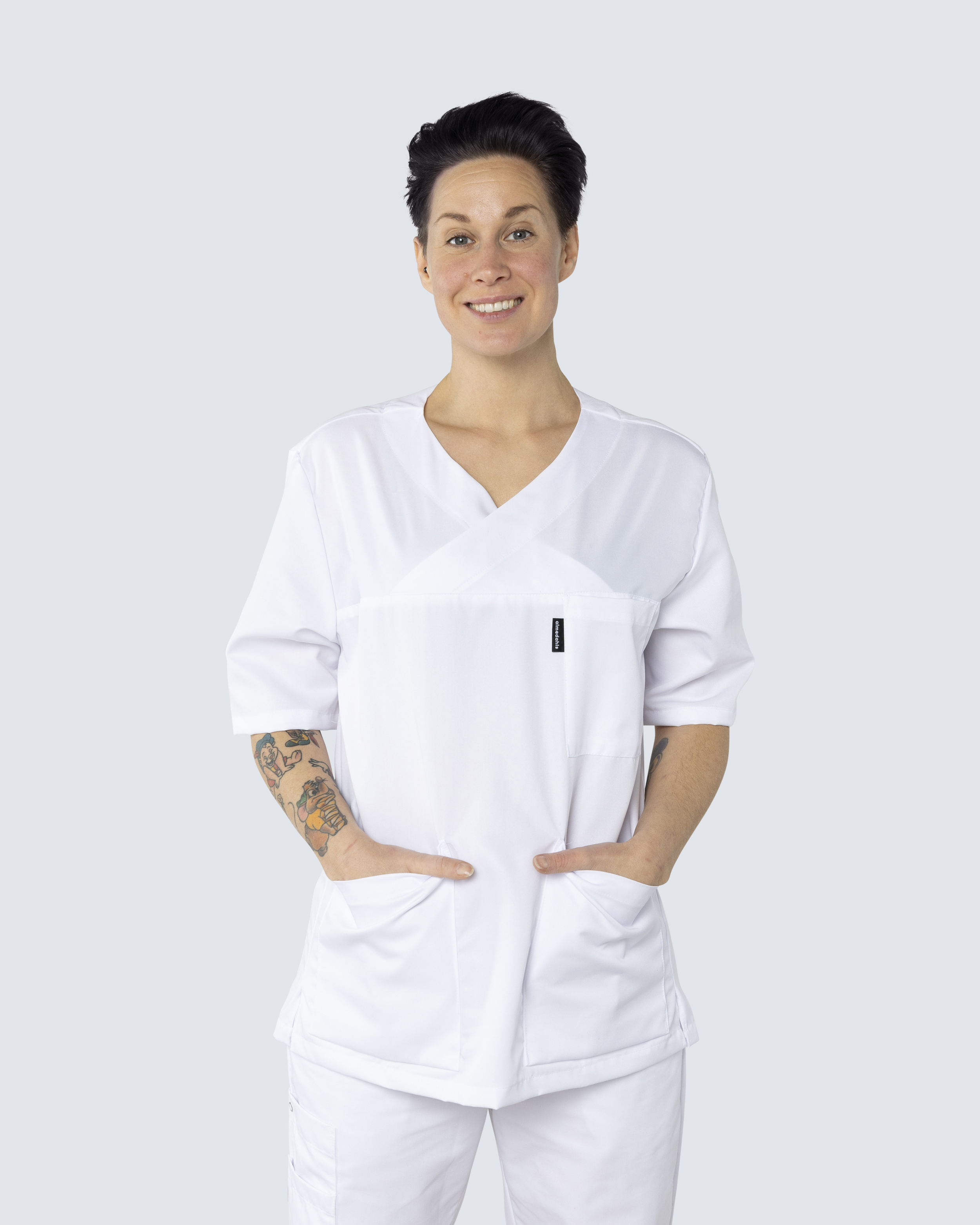 Almedahls Vit V-blus Unisex Tencel