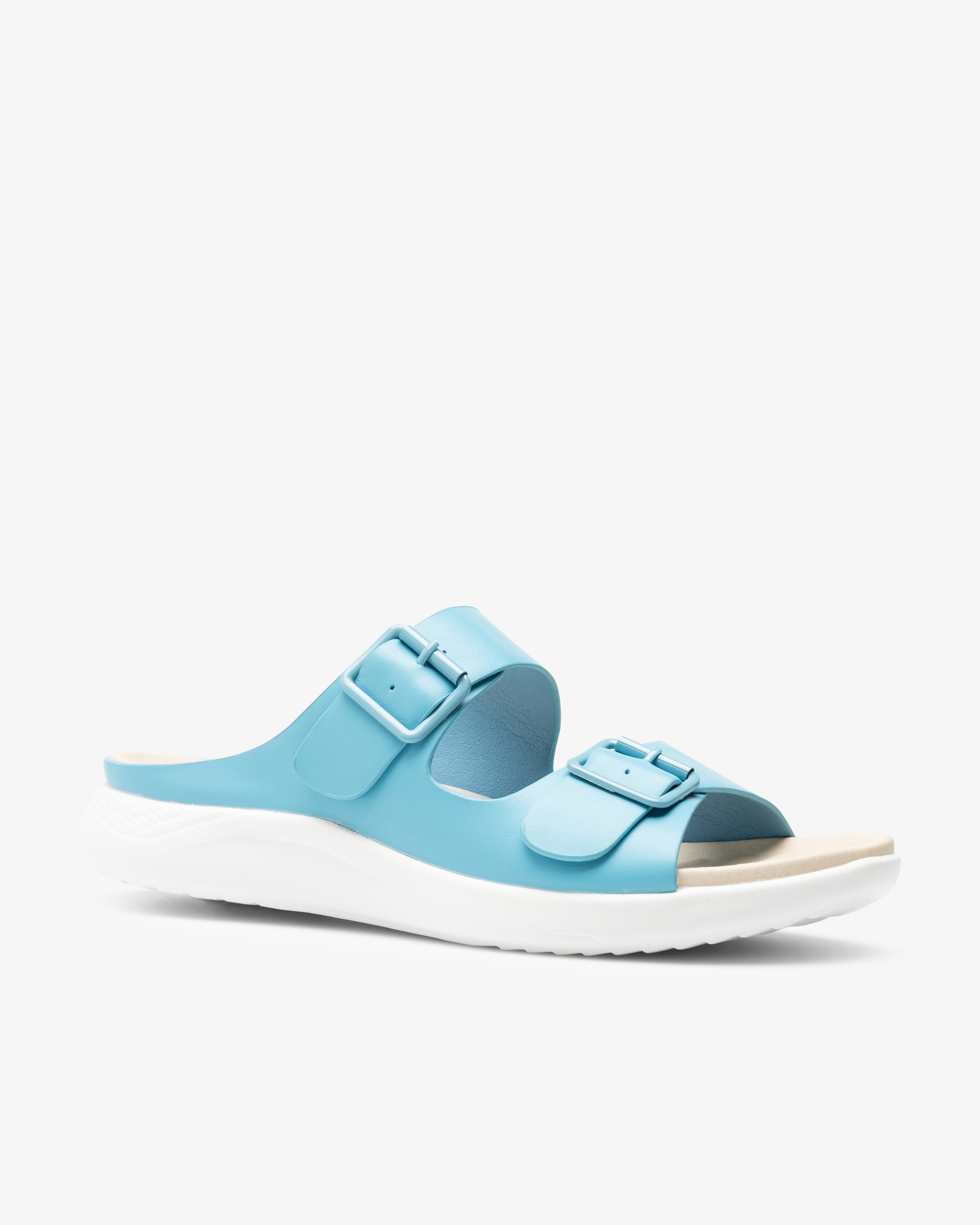 Arbetssandal i slip in-modell med mjuk fotbädd. De två justerbara remmarna ger möjlighet till att anpassa passformen för att få optimal bekvämlighet. Sulan har goda stötdämpande egenskaper som gör varje steg mer bekvämt under långa arbetspass.