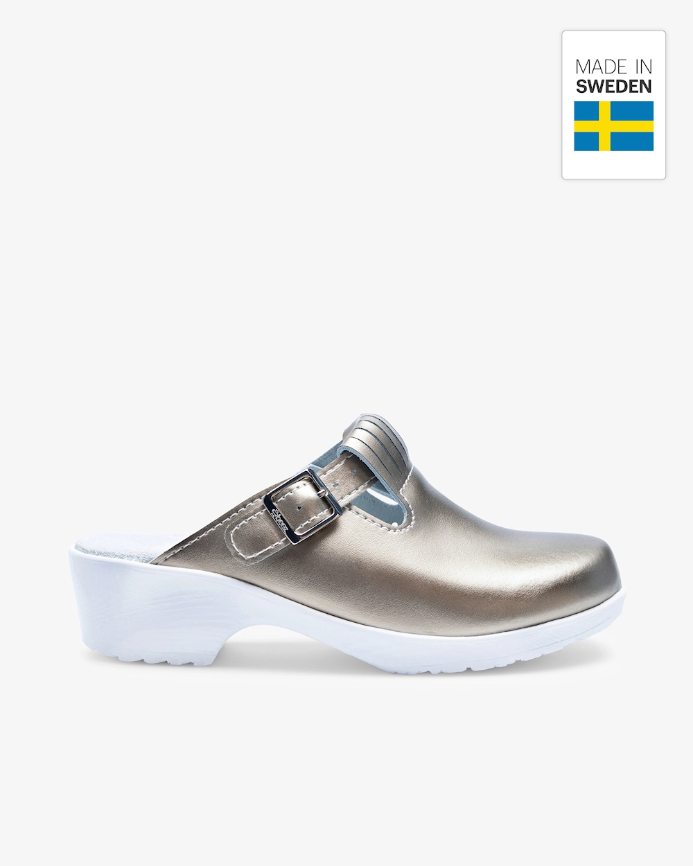 Vårdväskans arbetsskor tillverkas i Sverige och är utformade för vårdyrket. Skinnet är äkta läder med ett överdrag av PU, vilket gör skorna tåliga och avtorkningsbara.