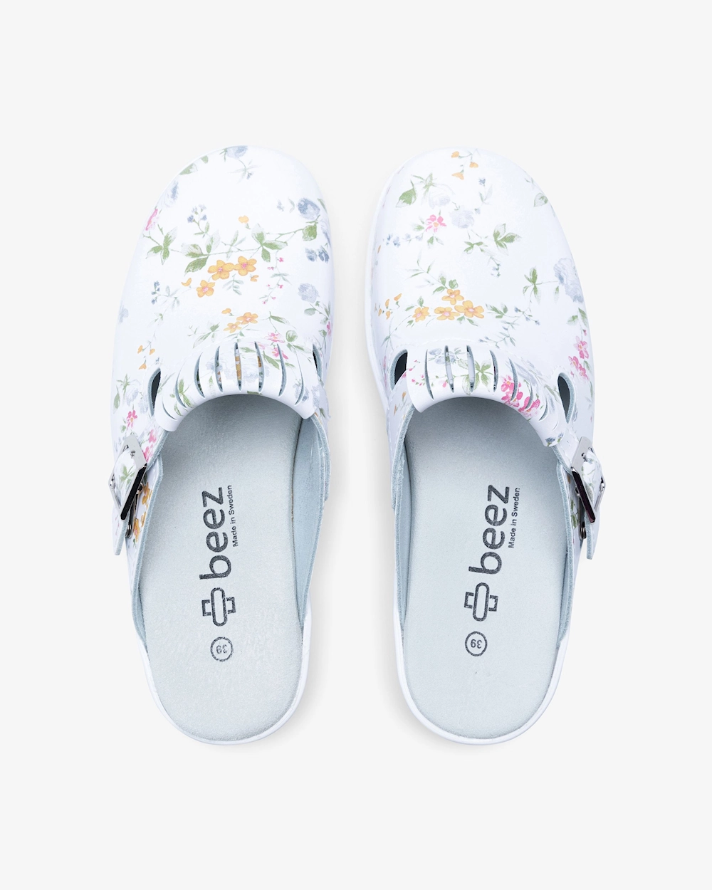 Vårdväskans arbetssskor tillverkas för hand i Sverige och är utformade för vårdyrket. Ovandelen är tillverkad i äkta läder med ett skyddande överdrag av matt PU.. En beläggning av PU innebär att du kan rengöra ytan med mild tvål och vatten. Sulan är av mjuk, slitstark PU (polyuretan) och har ett inlägg av mjuk kalvmocka. Skon andas bra och har en hård tå som skyddar mot lätta smällar. Perfekt sko för dig som arbetar långa dagar på hårda golv.