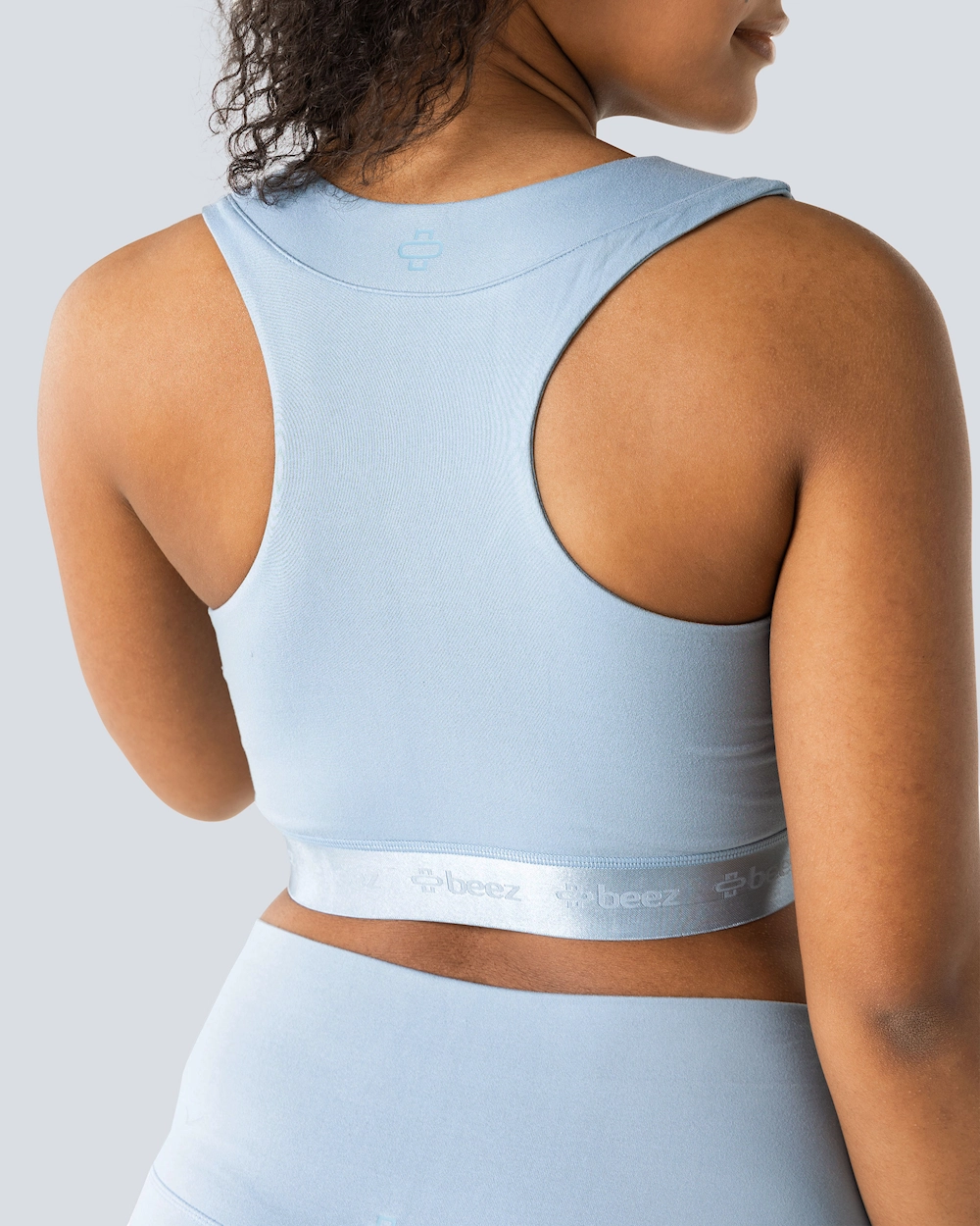 Mjuk och stretchig sporttopp utan bygel eller kanter som skaver. Toppen ger behagligt stöd och har en resårkant nedtill som håller den på plats under hela dagen. Beez Basics Sporttopp är del av en serie bekväma basplagg som följer dig genom vardagen och ger 100% komfort.