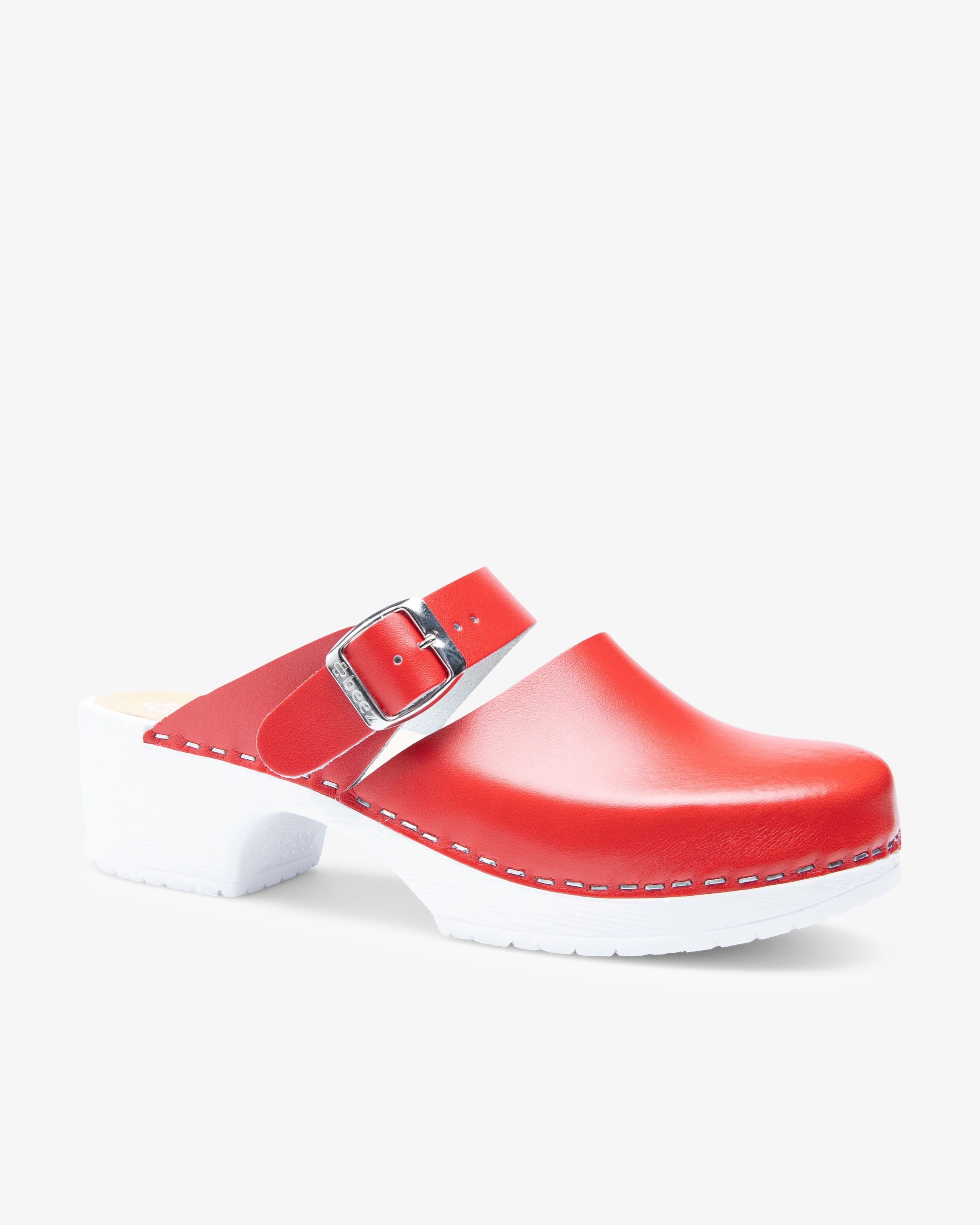 Beez Belle är en trendig arbetssko med snygg design. Inspirerad av en klassisk träsko med moderna detaljer som justerbart spänne och luftiga insnitt. Skon har en stabil sula i PU-gummi som ger ett bra grepp, med ett inlägg av träfanéer för att ge ett stabilt stöd under långa arbetspass. Med ovandel i PU kan du enkelt rengöra och torka av skon - optimalt för dig som jobbar i vården.