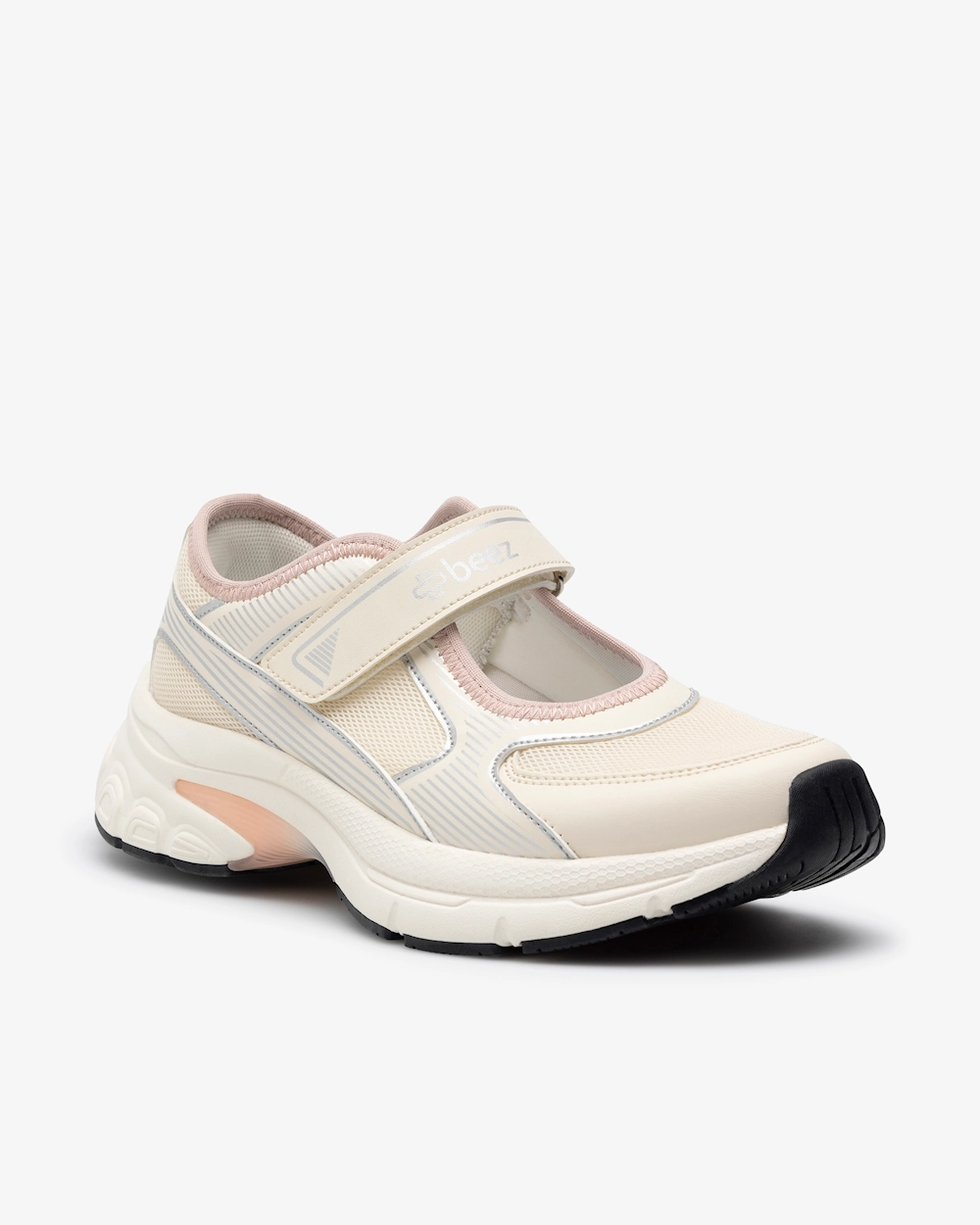 Denna hybridsko kombinerar stabiliteten hos en sneaker med sandalens luftiga känsla – perfekt för hektiska arbetsdagar. Ventilerande ovandel i mesh och öppet insteg ger skön komfort och fräschör. Justerbart kardborreband över foten säkerställer en personlig passform. Den extra rejäla sulan erbjuder bra stöd både inomhus och utomhus.