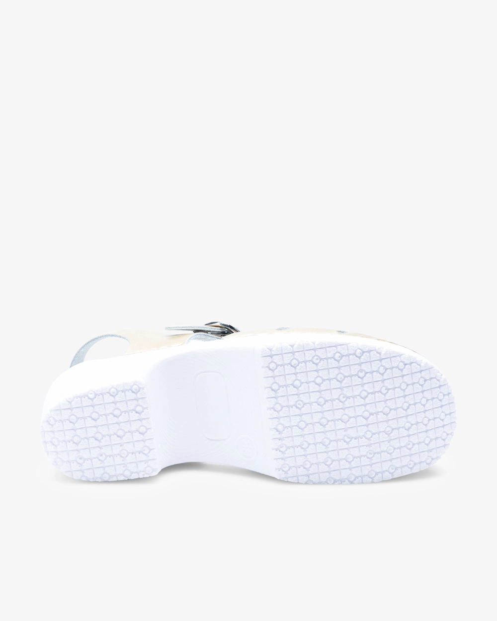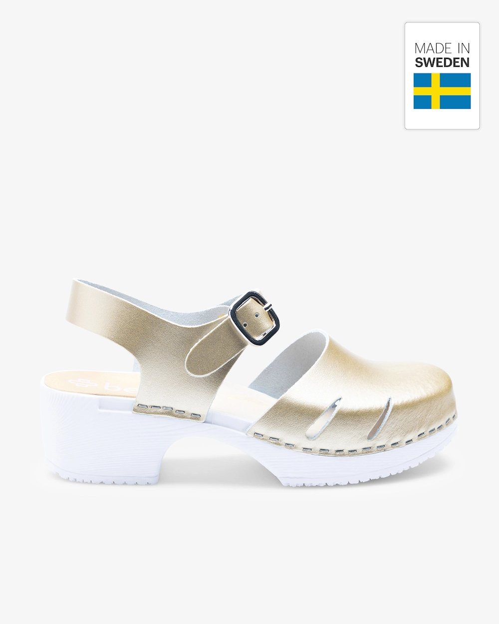 Vårdväskans arbetssskor tillverkas för hand i Sverige och är utformade för vårdyrket. Ovandelen är tillverkad i äkta läder med ett skyddande överdrag av matt PU.. En beläggning av PU innebär att du kan rengöra ytan med mild tvål och vatten. Skons rem har ett nickelfritt spänne och kan justeras för bästa passform. Sulan är av mjuk, slitstark PU (polyuretan) och har ett inlägg av träfanér. Skon andas bra och har en hård tå som skyddar mot lätta smällar. Perfekt sko för dig som arbetar långa dagar på hårda golv.