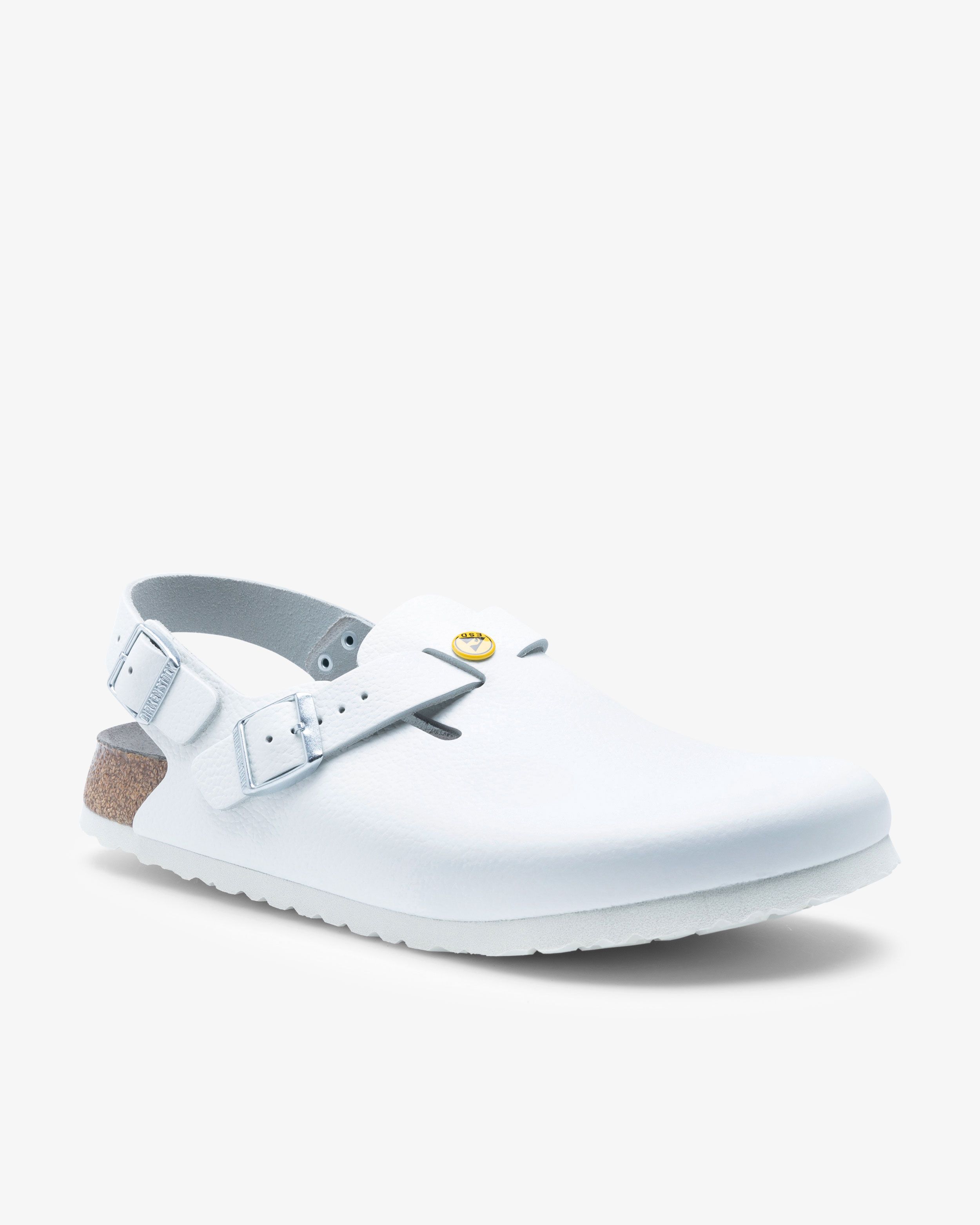 Birkenstock Tokio ESD förhindrar elektriska urladdningar och kan med fördel användas inom eltekniska yrken. Med dess särskilt utvecklade ESD-sula avges löpande mikrourladdningar, vilket innebär ett skydd för både individen och elektriska komponenter.