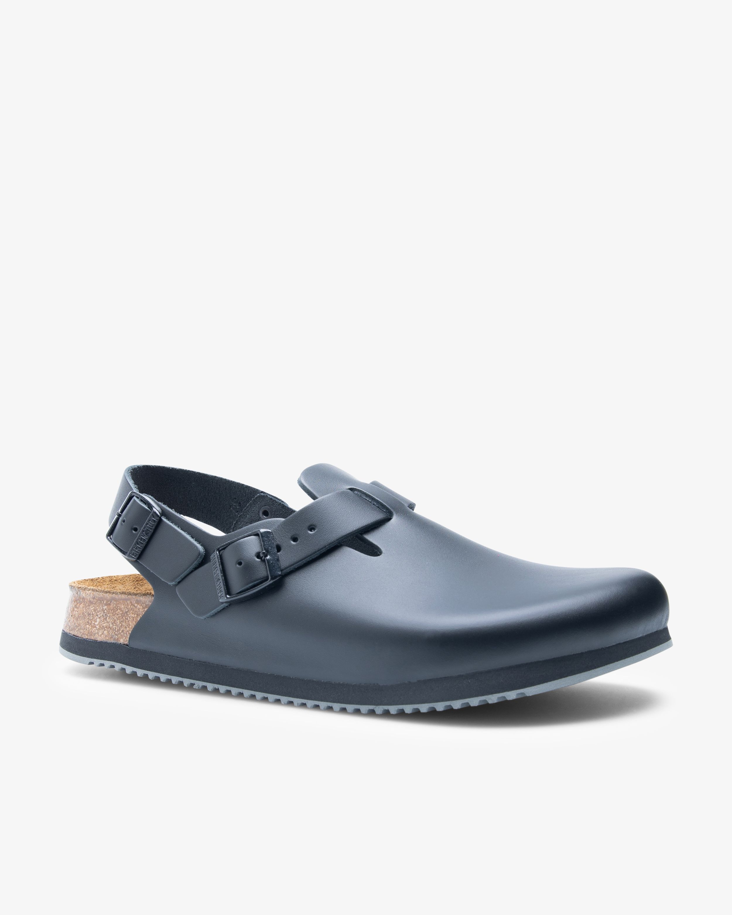 Birkenstock Professional Tokio Super Grip Regular är en bekväm arbetssko med anatomiskt utformad fotbädd och justerbara remmar för optimal passform. Den stötdämpande sulan med EVA-gummi gör varje steg mer bekvämt under långa arbetsdagar uppe på fötter. Super Grip-yttersulan är halksäker, fett- och oljebeständig och ger ett behagligt rundat steg.