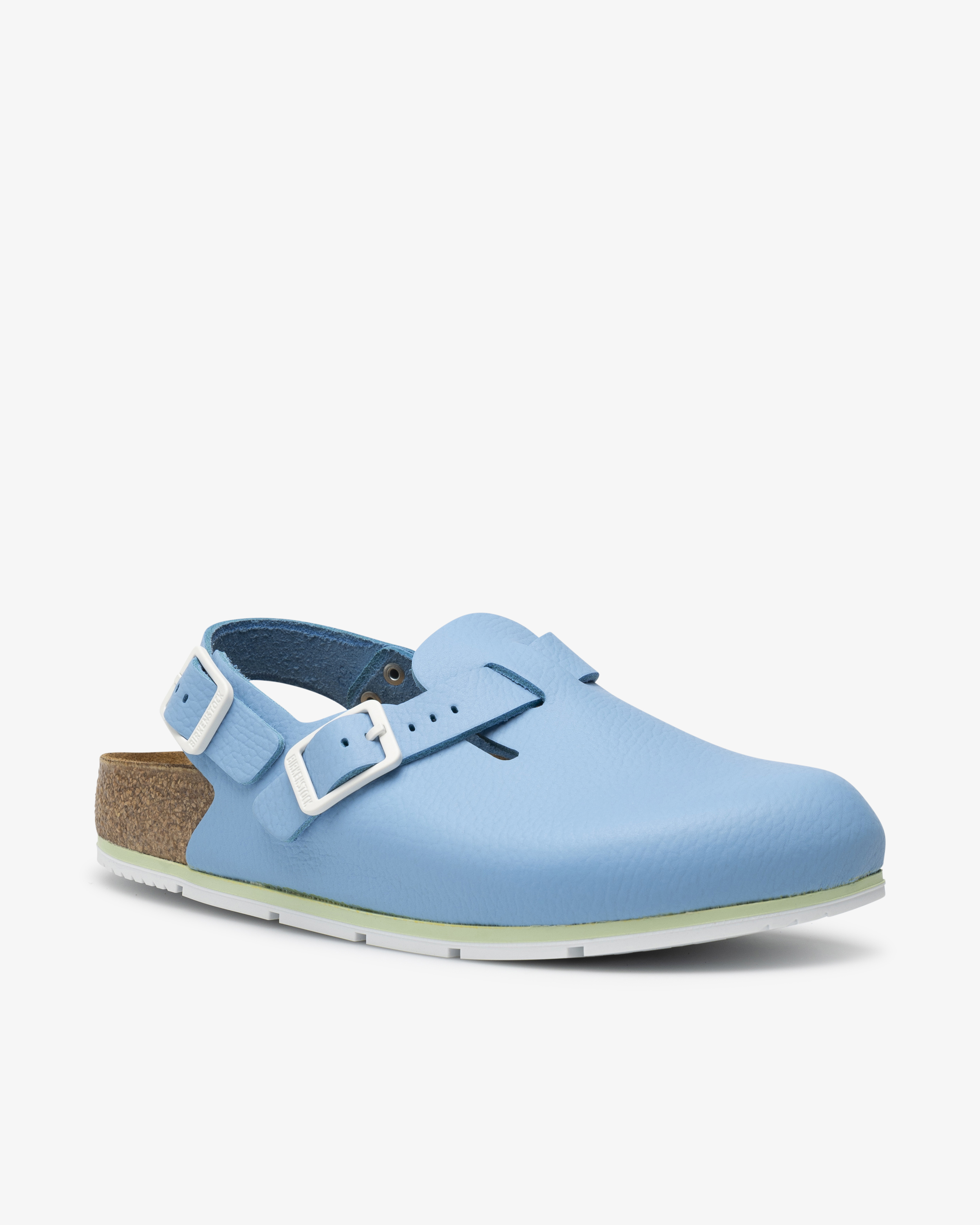 Tokio PRO sandalen från Birkenstock erbjuder en perfekt mix av komfort och säkerhet för vårdpersonal som värdesätter kvalitet och funktion. Den anatomiskt formade kork-latex fotbädden i mocka kombinerat med en dämpande EVA mellansula garanterar optimal komfort under långa arbetspass. Sandalens ovandel är tillverkad av PU-belagt naturläder för hållbarhet. Med en olje- och fettbeständig yttersula i gummi, samt justerbara remmar inklusive hälrem, är denna sko både praktisk och säker. Den halksäkra designen, testad enligt EN ISO 20347:2012 (SRA-kategori), gör den idealisk för arbetsmiljöer där säkerhet står i fokus.