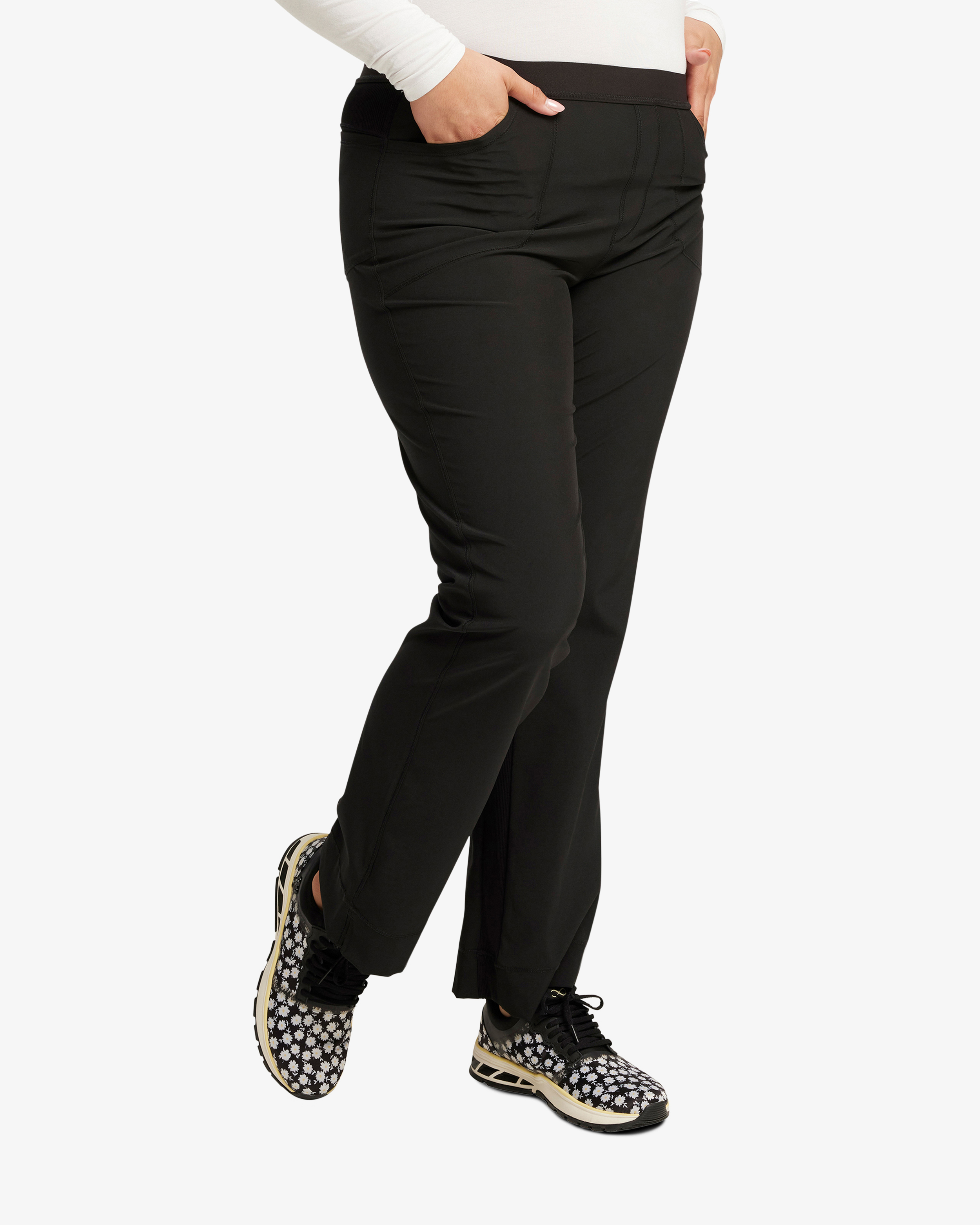 Denna slimfit arbetsbyxa med låg midja är designad för att möta vårdpersonalens behov av både funktionalitet och komfort. Ett mjukt elastiskt midjeband och stretchpaneler i ribbstickning ger ökad rörelsefrihet. Flera praktiska fickor och slitsar i sidorna underlättar arbetsdagen, medan PROTX2-materialet effektivt avvisar fukt och motverkar odör.