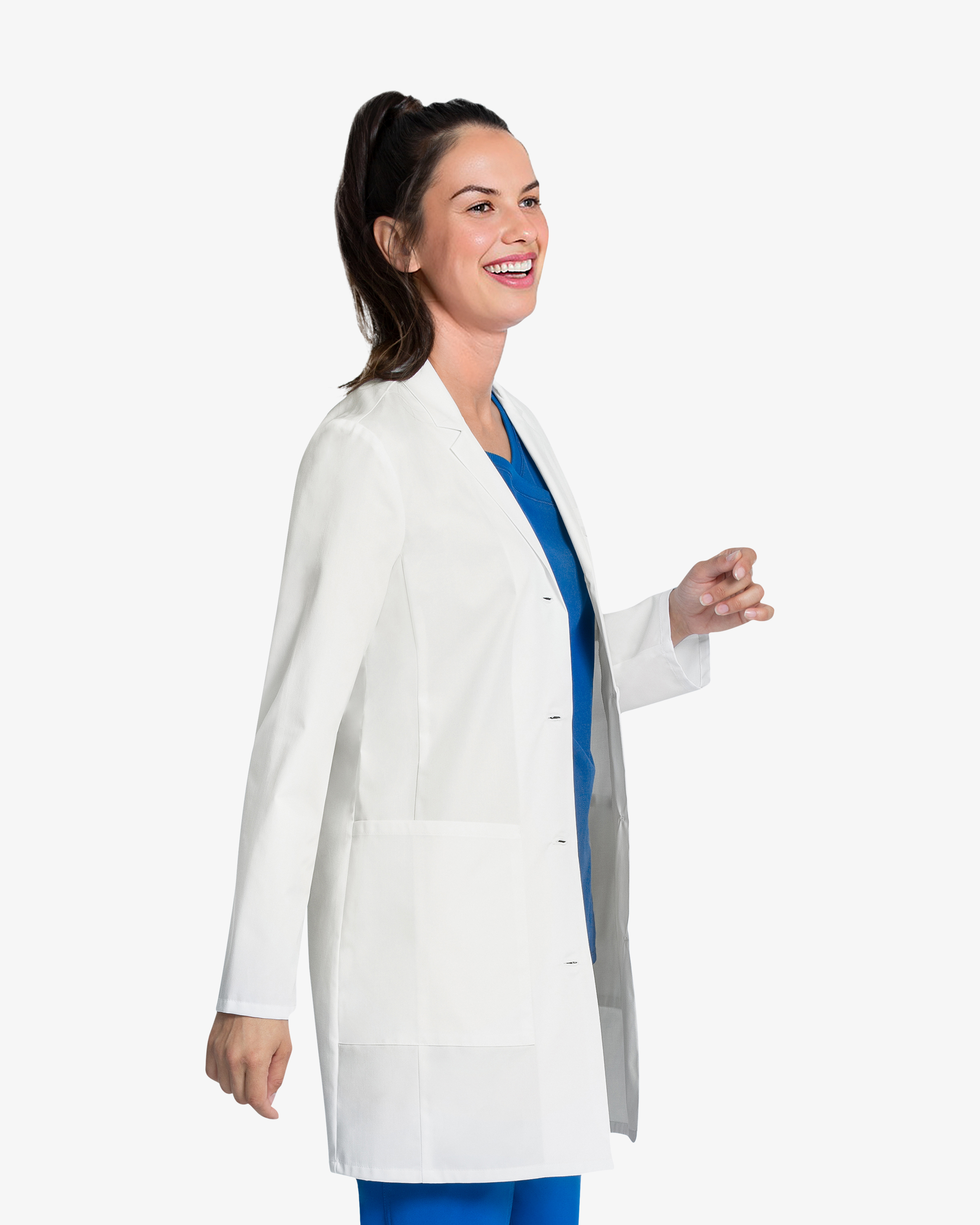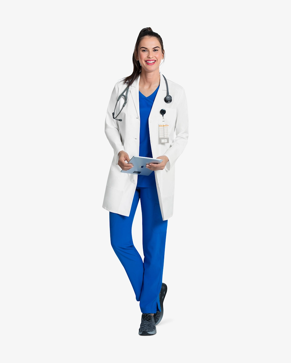 Läkarrock i klassisk, modern passform med slagkrage och fyrknappsknäppning. Prinsessömmar fram och bak ger en skräddad siluett och optimal rörelsefrihet. Praktiska fickor, inklusive bröstficka med instrumentögla samt platser för surfplatta, gör arbetsdagen smidigare. Ok i ryggen och elastisk bungee-loop i nacken bidrar till extra komfort. mekanisk stretch-twill. Rygglängd 84 cm.