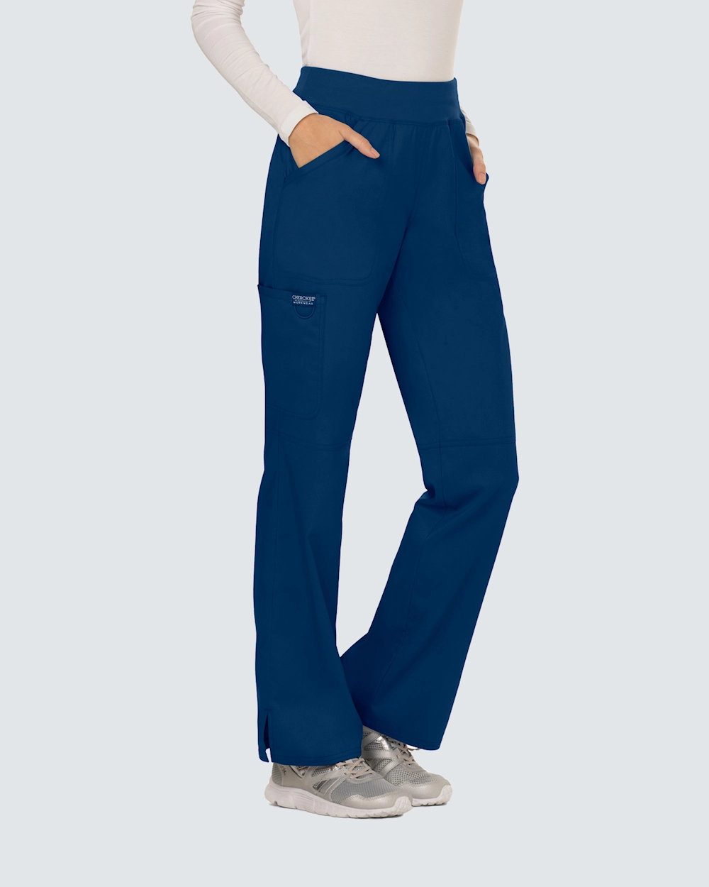 Den moderna arbetsbyxan med rak passform erbjuder en kombination av stil och funktion. Byxan har en normalhög midja med en bred stickad mudd och förstärkt resår som ger en bekväm passform.