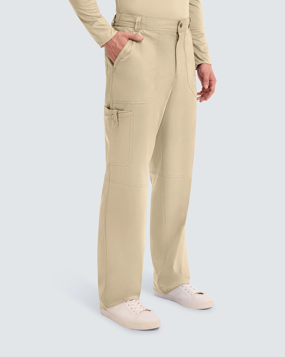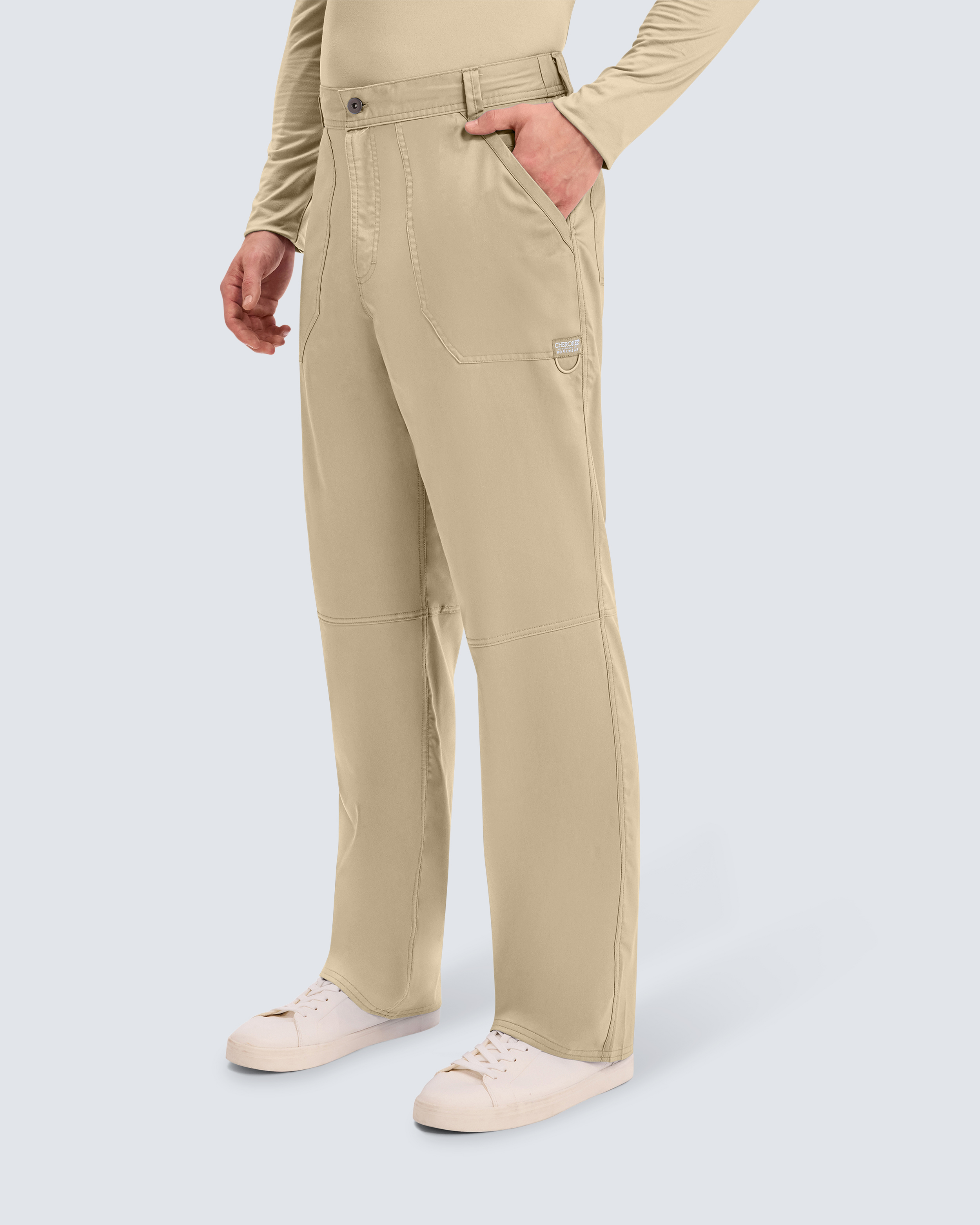 Cherokee Arbetsbyxa Herr kombinerar stil och funktion för den moderna vårdgivaren. Med avsmalnande ben och mjukt material som andas, garanteras komfort hela dagen. Den 2-vägsstretchiga designen med justerbar dragsko och midjeresår baktill erbjuder byxan optimal passform. Utrustad med praktiska detaljer så som hällor, gylf med knapp och totalt sju fickor för förvaring av nödvändiga arbetsredskap. Perfekt för de som söker funktionella och snygga arbetskläder.