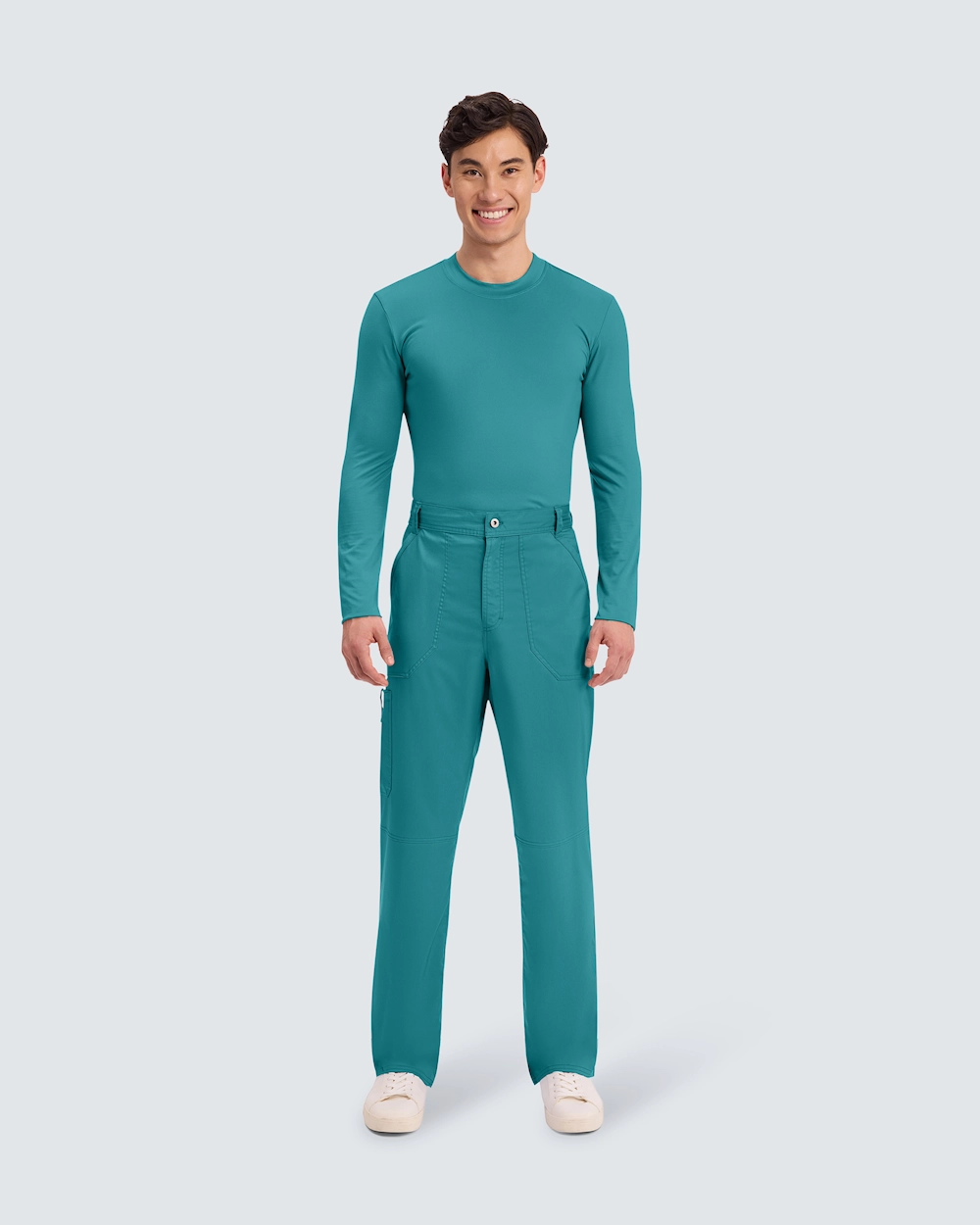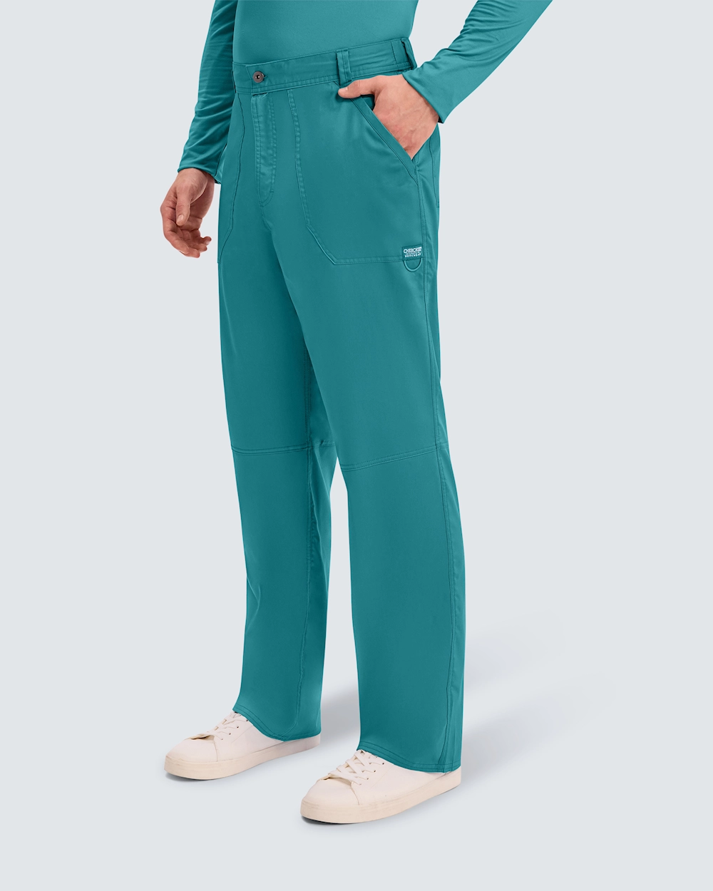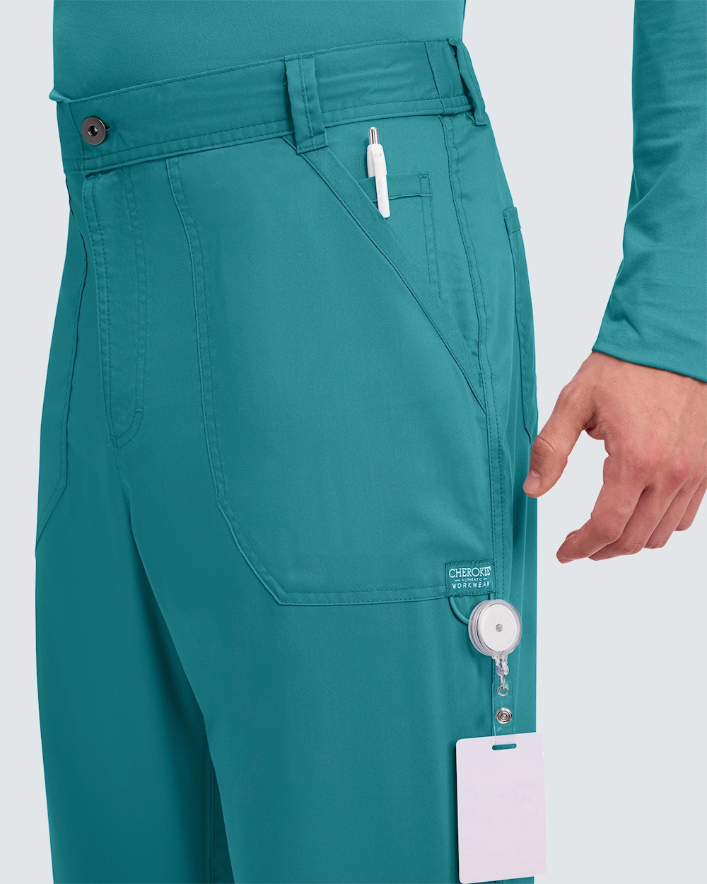 Cherokee Arbetsbyxa Herr kombinerar stil och funktion för den moderna vårdgivaren. Med avsmalnande ben och mjukt material som andas, garanteras komfort hela dagen. Den 2-vägsstretchiga designen med justerbar dragsko och midjeresår baktill erbjuder byxan optimal passform. Utrustad med praktiska detaljer så som hällor, gylf med knapp och totalt sju fickor för förvaring av nödvändiga arbetsredskap. Perfekt för de som söker funktionella och snygga arbetskläder.