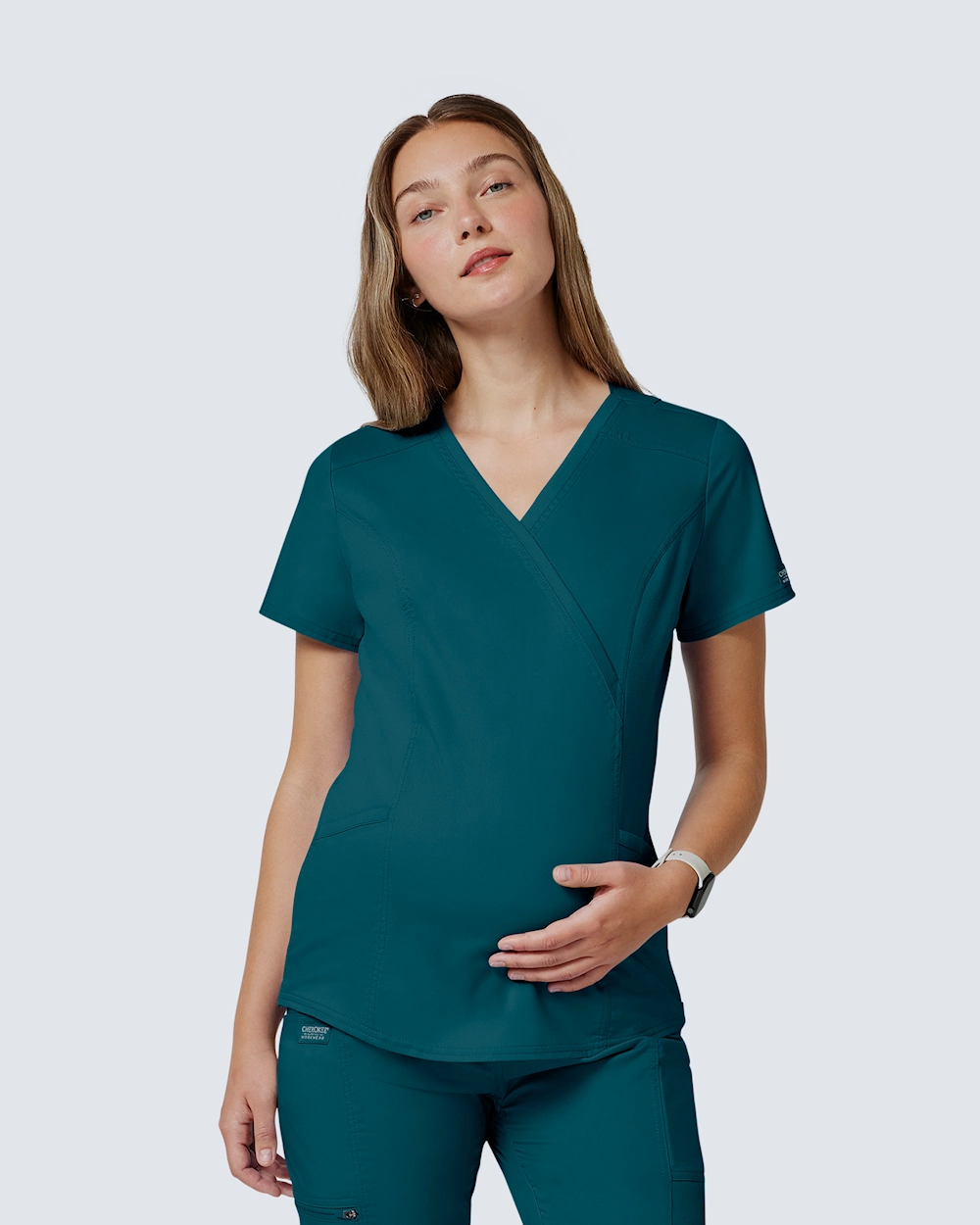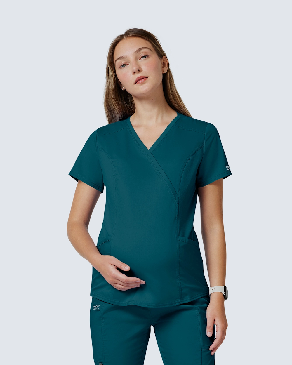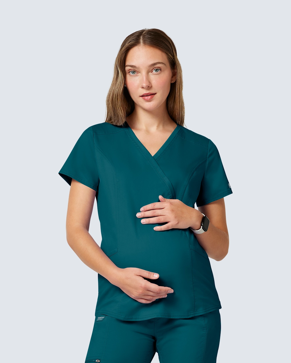 Mammatunikan med omlott-design är skapad för komfort och funktion under hela graviditeten. Den mjuka stickade panelen framtill och sidokilar med dragkedja och mesh erbjuder flexibel passform och plats att växa. Tunikan har två praktiska framfickor och genomtänkta sömmar fram och bak. Perfekt val för dig som vill kombinera stil, rörelsefrihet och funktion i vårdmiljö.