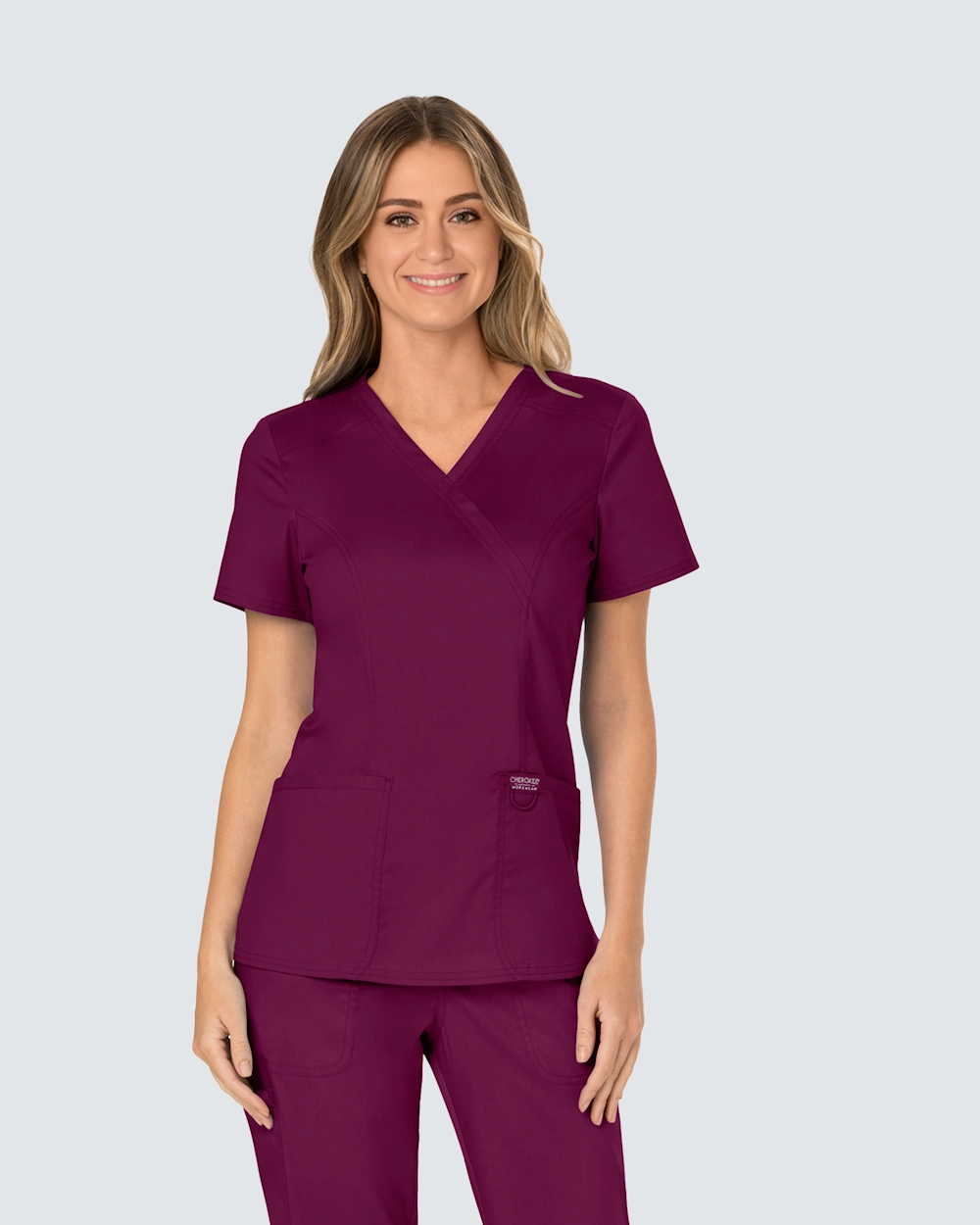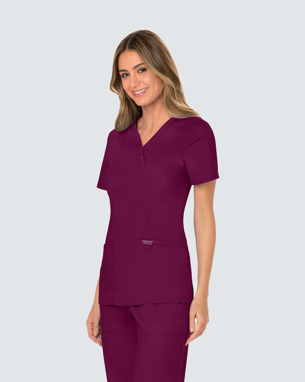 Cherokee Revolution Mock Wrap Top WWE610 Vinröd