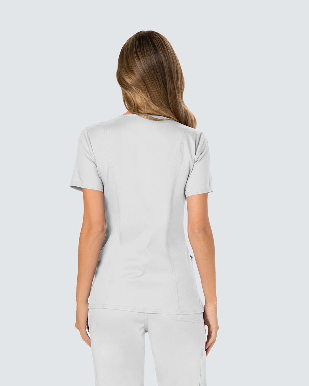 Mjuk tunika i omlottmodell erbjuder både stil och komfort på jobbet.