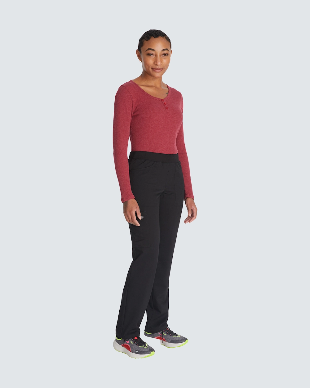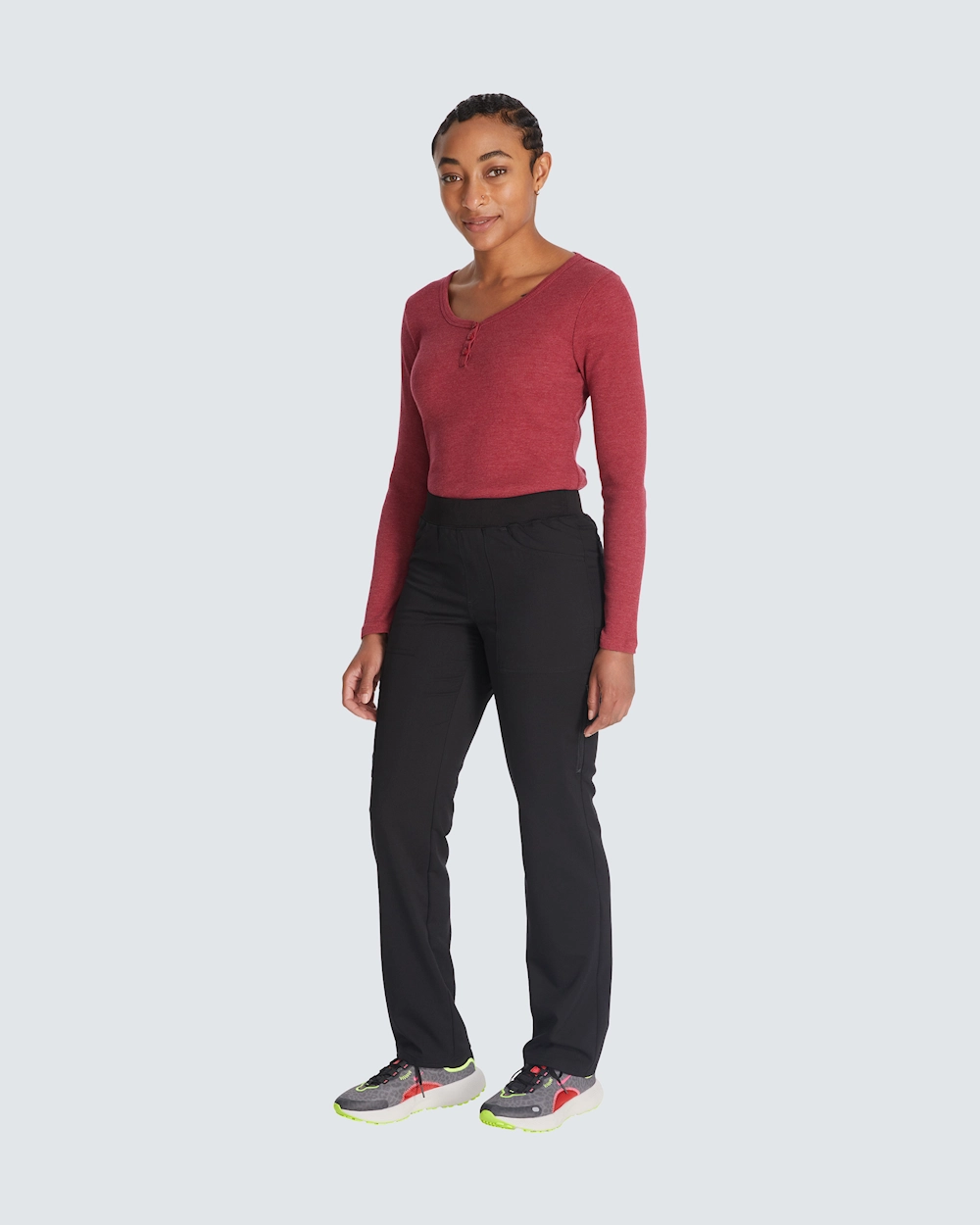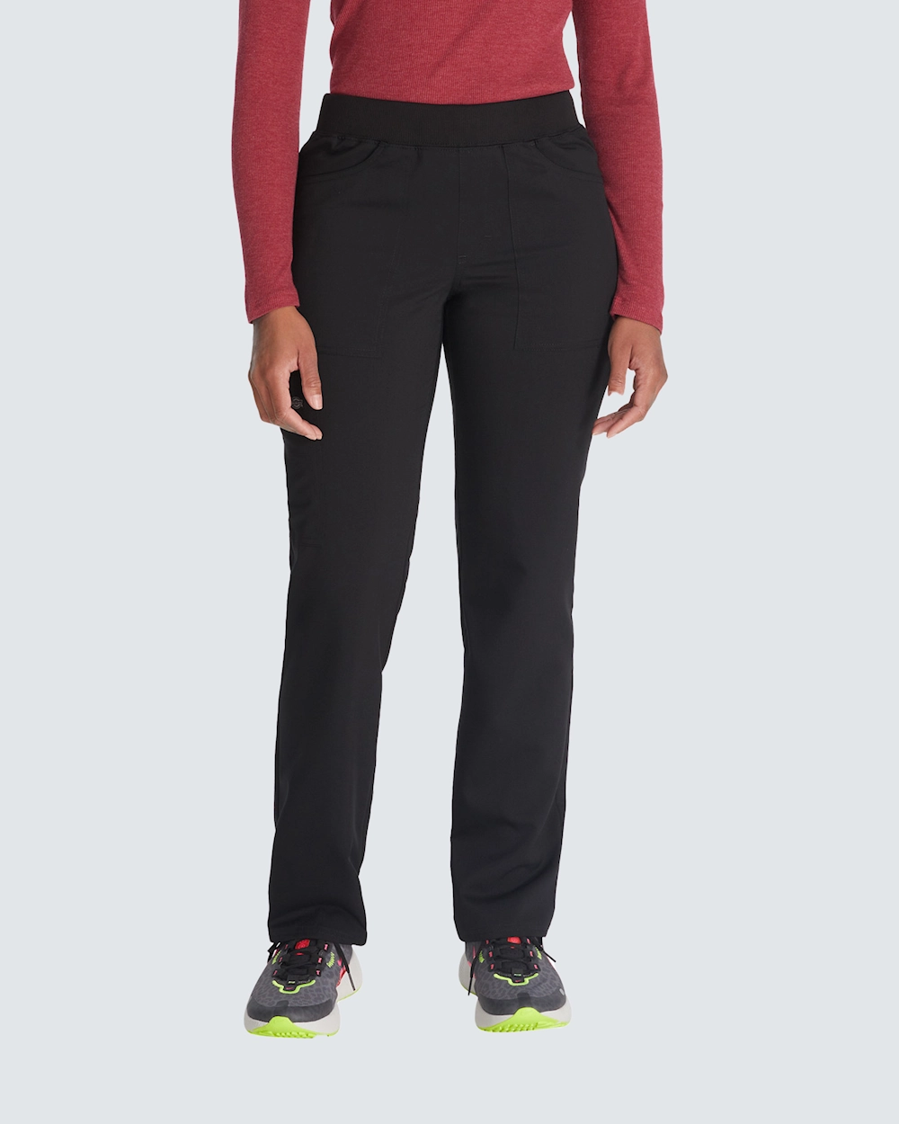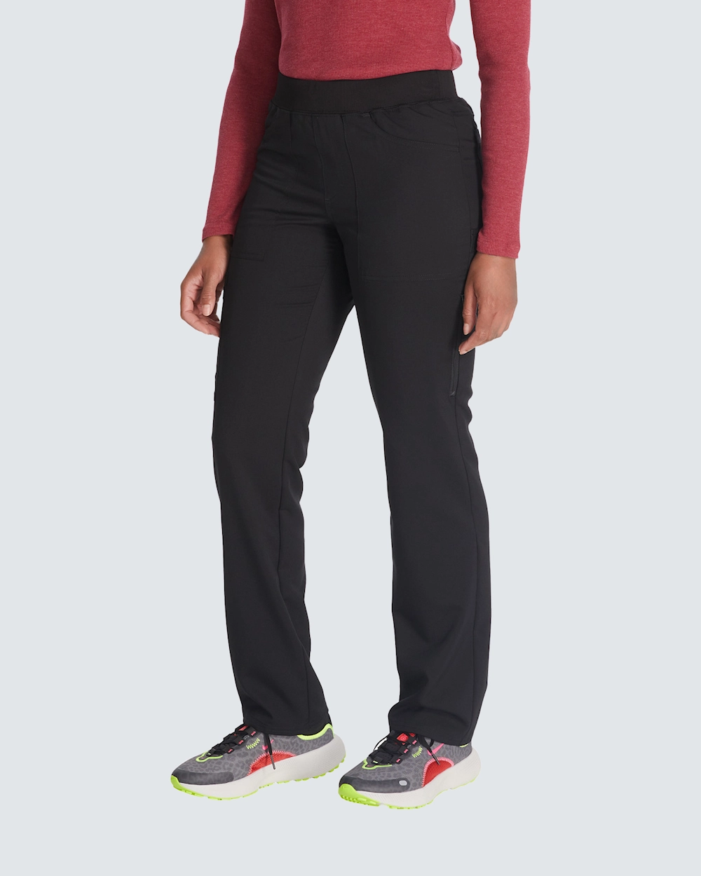 Bekväma arbetsbyxor med avsmalnande ben och normalhög midja. Arbetsbyxan erbjuder oöverträffad komfort med pull-on-design och mjuk ribstickad midja med dold dragsko.