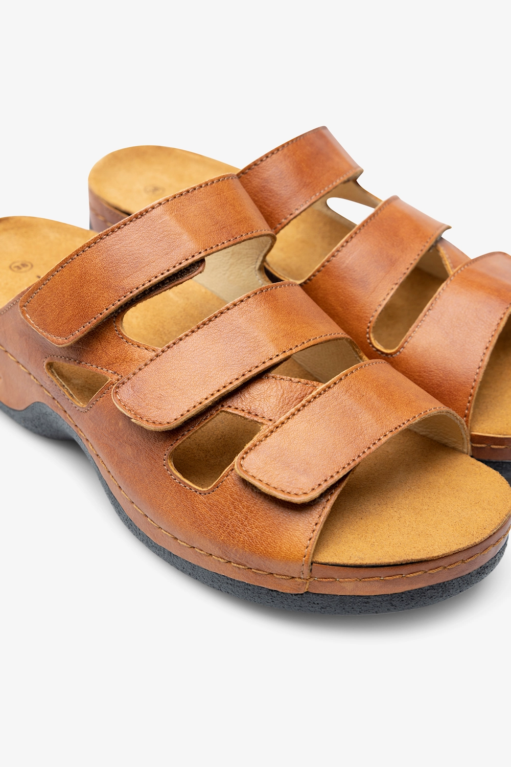 Mjuk damsandal i skinn med utbytbar, ergonomisk fotbädd som ger stöd för hålfoten och lyfter framfotsvalvet. Sandalen är skinnfodrad och har justerbara remmar med kardborre. Perfekt för dig som lätt blir trött i fötterna och är i behov av en luftig och mjuk sandal som erbjuder gott om stöd.
