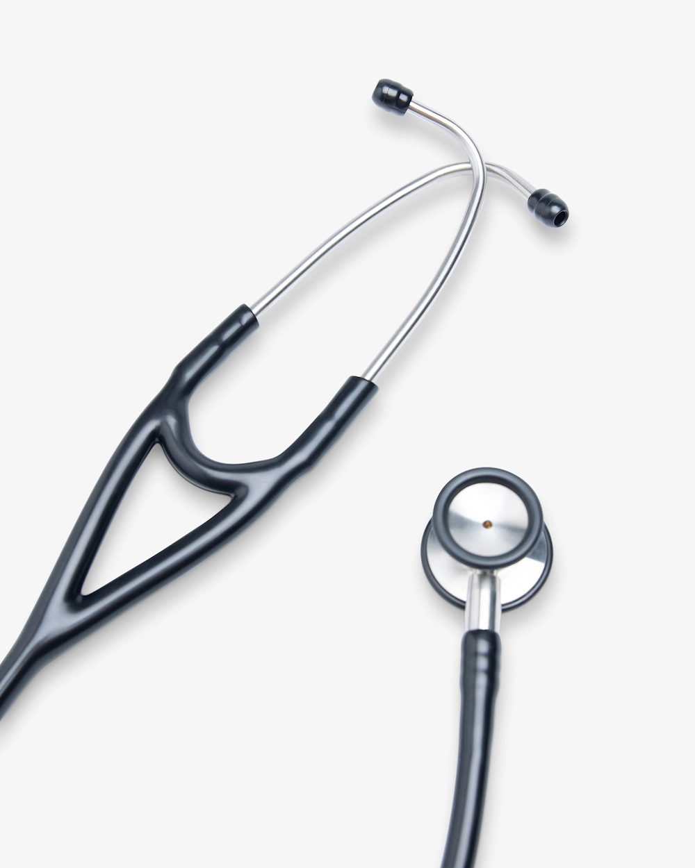 Pålitligt, högkvalitativt stetoskop som lämpar sig väl för både undersökning, övervakning och diagnostiska auskultationer. Stetoskopet har dubbelsidigt bröststycke som kan roteras 180⁰ för att öppna och stänga klockan, och på så sätt variera mellan hög- och lågfrekventa ljud. Bröststycket är djupt och konformat för att kunna höra lågfrekventa ljud extra bra och har extra känsligt membran för bättre ljud. Icke-kylande membran för ökad patientkomfort. GIMA Cardiology Stetoskop har förstärkt headset ner i slangen och passformen på headsetet kan justeras genom att dra isär eller trycka ihop byglarna.