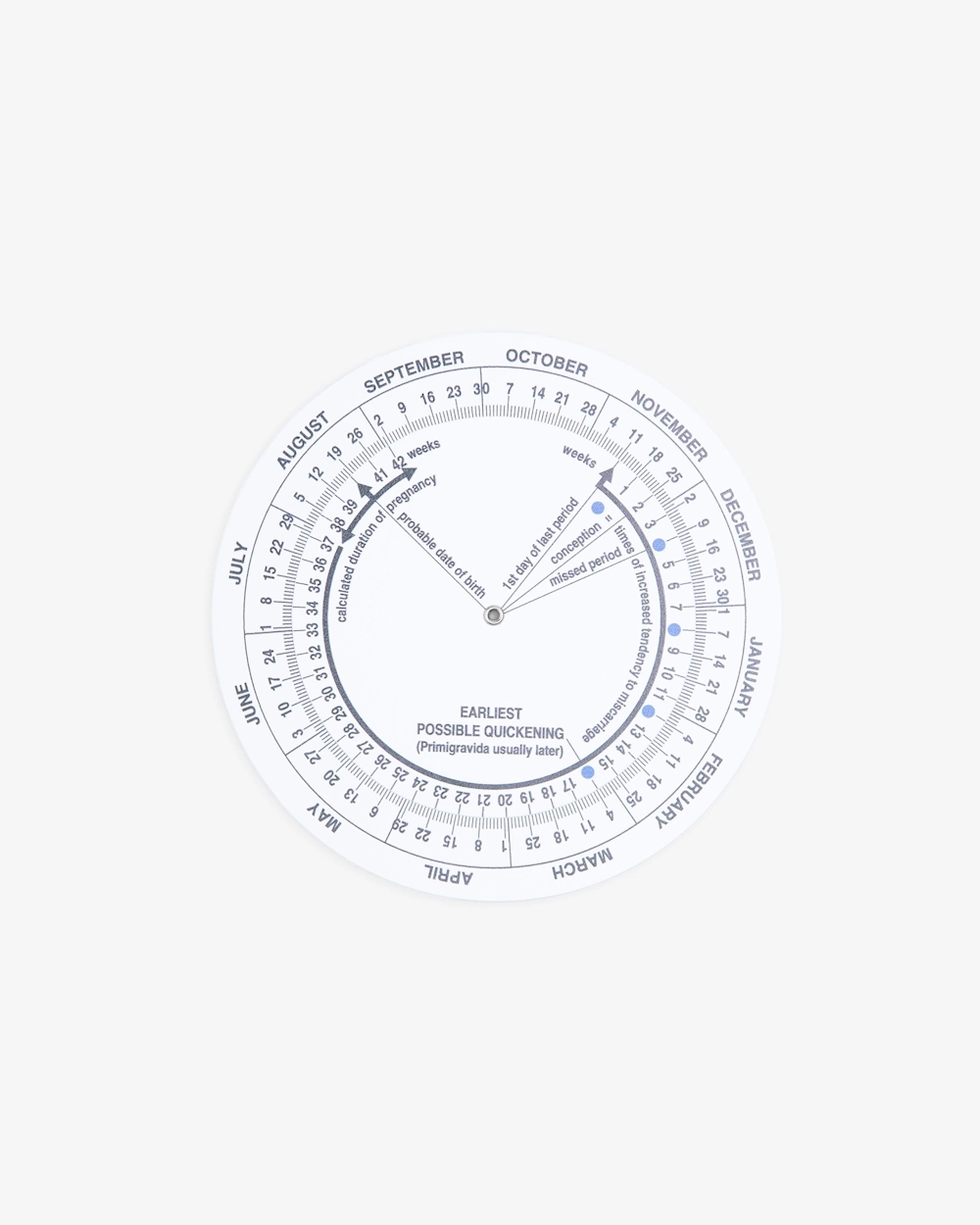 Graviditetssnurra på engelska för fastställande av beräknat förlossningsdatum. Består av två roterande skivor i olika storlek och är även användbar vid bedömning av medicinering.