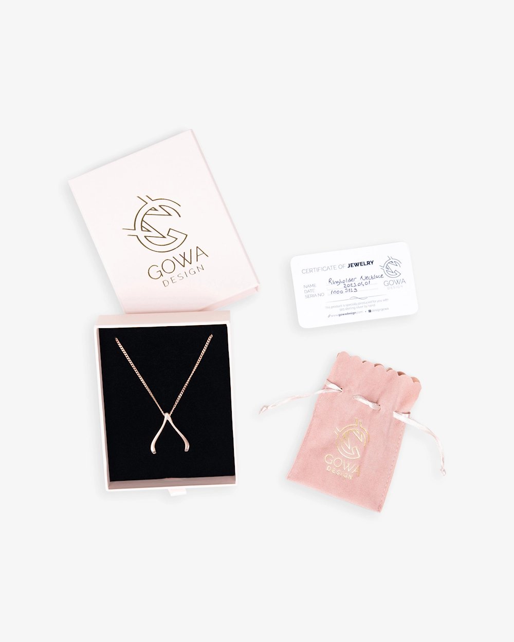 Skötselråd: Putsa ditt halsband med jämna mellanrum med den medföljande trasan. När du inte använder halsbandet, förvara det i den medföljande smyckespåsen på ett torrt och mörkt ställe.