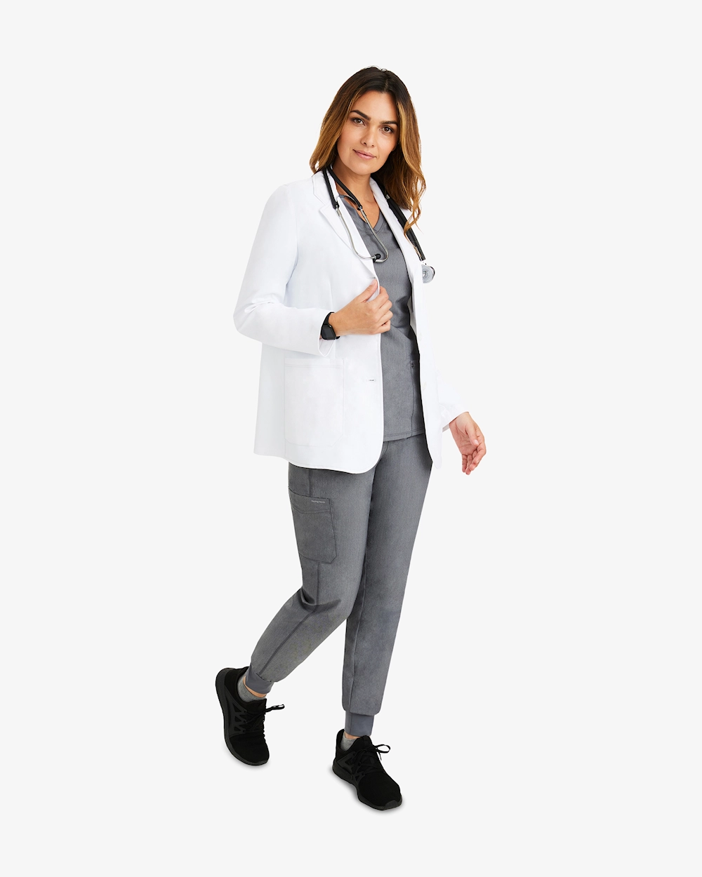 - Minimalistisk konsultationsrock med klassiska labrockdetaljer