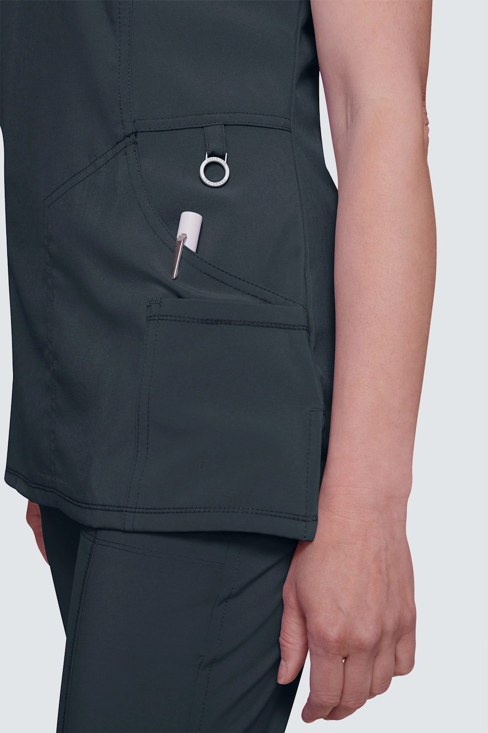Utformad med en praktisk O-ring och en saxficka, håller tunikan ordning på dina viktiga verktyg. Materialet är fuktabsorberande och rynkfritt, det säkerställer att du ser representativ ut från morgon till kväll.
