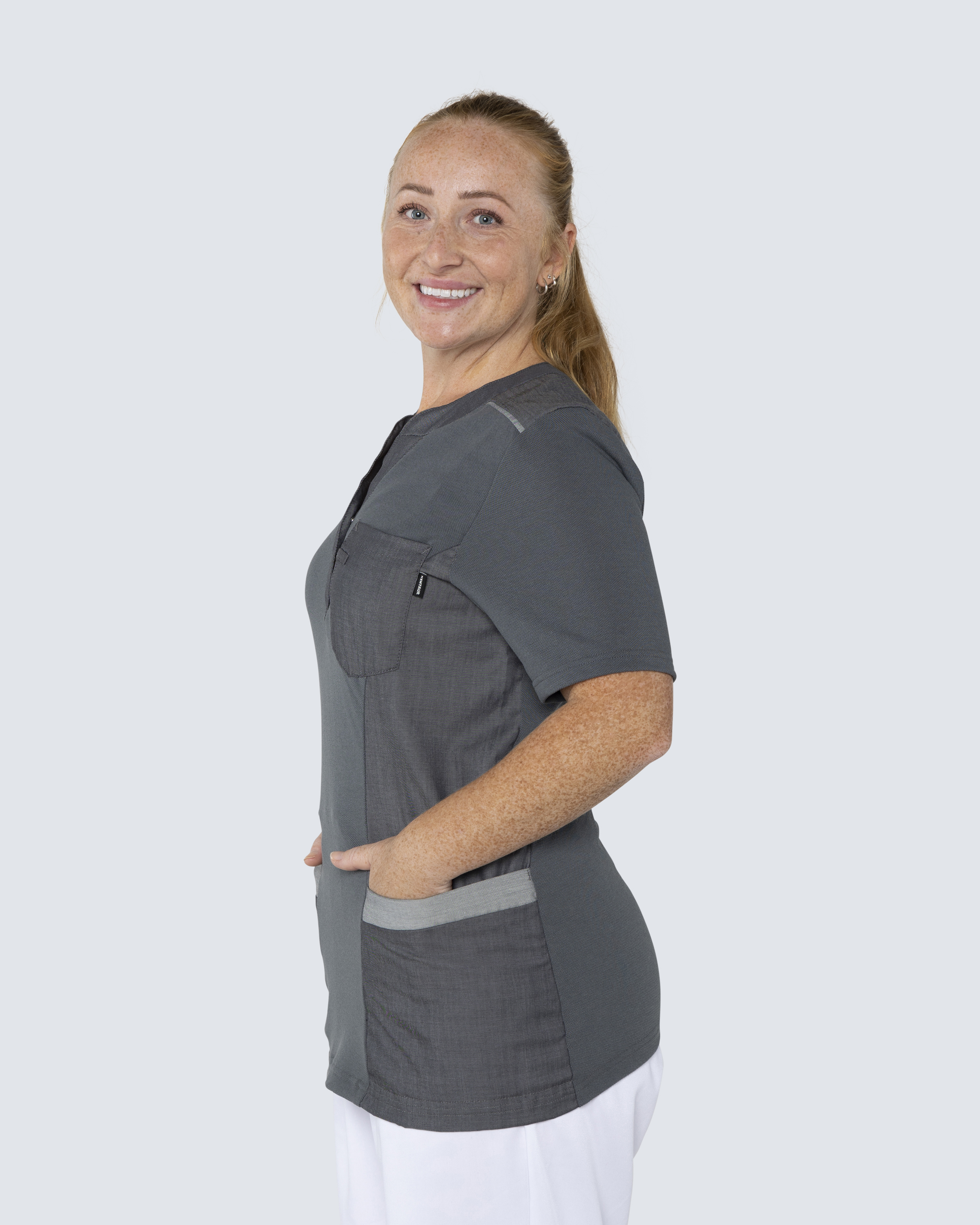 Kentaur Dam Pique shirt är tillverkad av återvunnen polyester, vilket gör den till ett hållbart alternativ. Praktiska detaljer som ergonomiskt placerade höftfickor, invändig mobilficka och nyckelhälla. Materialet är stretchigt och mjukt, vilket garanterar maximal komfort under hela arbetsdagen. Perfekt för den aktiva vårdpersonalen som vill kombinera funktion med stil.