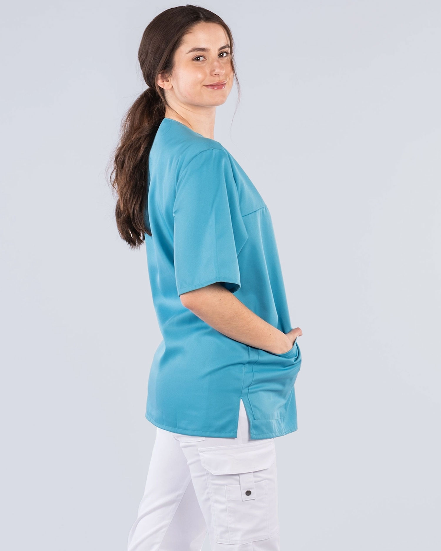 Rymlig bussarong i miljövänlig Tencel som ger en skön och bekväm känsla. Bussarongen har rymliga fickor med gott om plats för diverse arbetsredskap du behöver med dig under ditt arbetspass. Fickorna är dessutom ergonomiskt placerade vid höfterna vilket också ger bussarongen en fin passform även när de är fyllda.