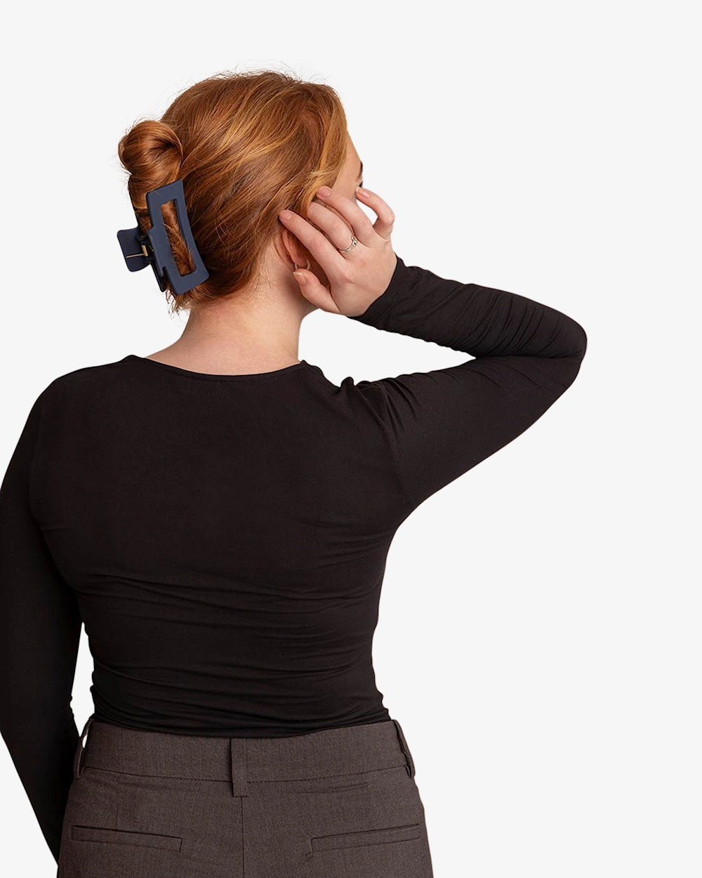 Hårklämman i modern design är anpassad för alla hårtyper och finns i fyra storlekar för perfekt passform. Extra stark fjäder och piggar på insidan ger ett säkert grepp som håller håret på plats hela dagen, även vid aktivt arbete. Den vattentåliga, matta ytan ser till att klämman sitter där den ska och ger en elegant touch på jobbet. Med 10,5 cm på Large passar modellen extra bra för dig som har längre eller tjockt hår.