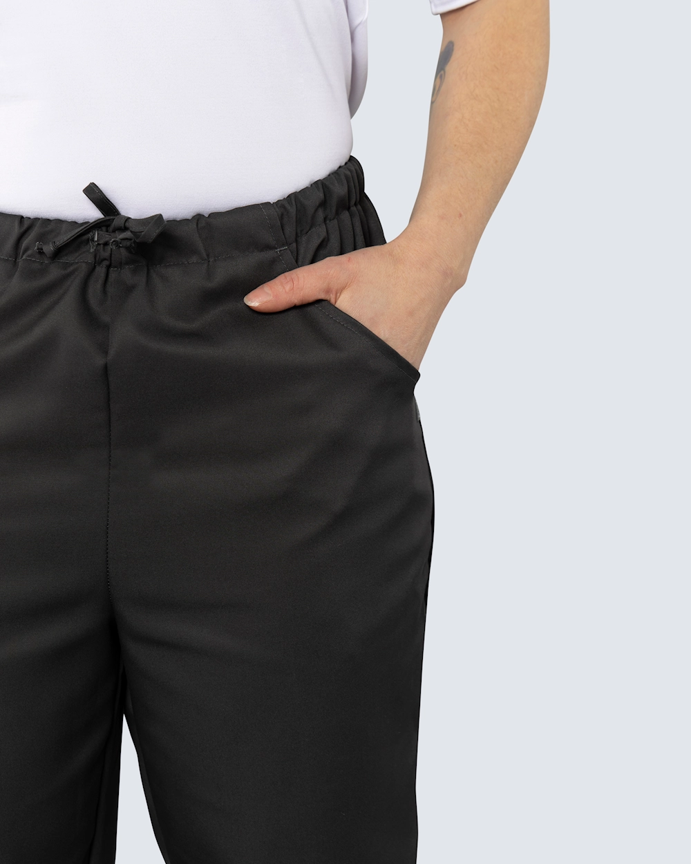 Dessa arbetsbyxor är tillvkerade i skönt material och med bekväma detaljer. Byxan har resår i midjan som ger en skön stretch och du kan själv anpassa passformen med knytband. Materialkombinationen Tencel/Polyster ger en slitstark byxa som andas och ger en bra ventilation och komfort.