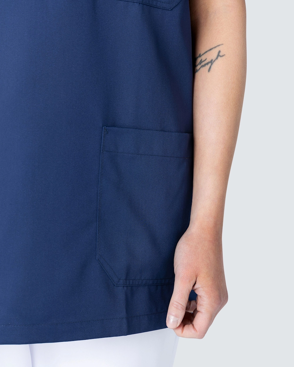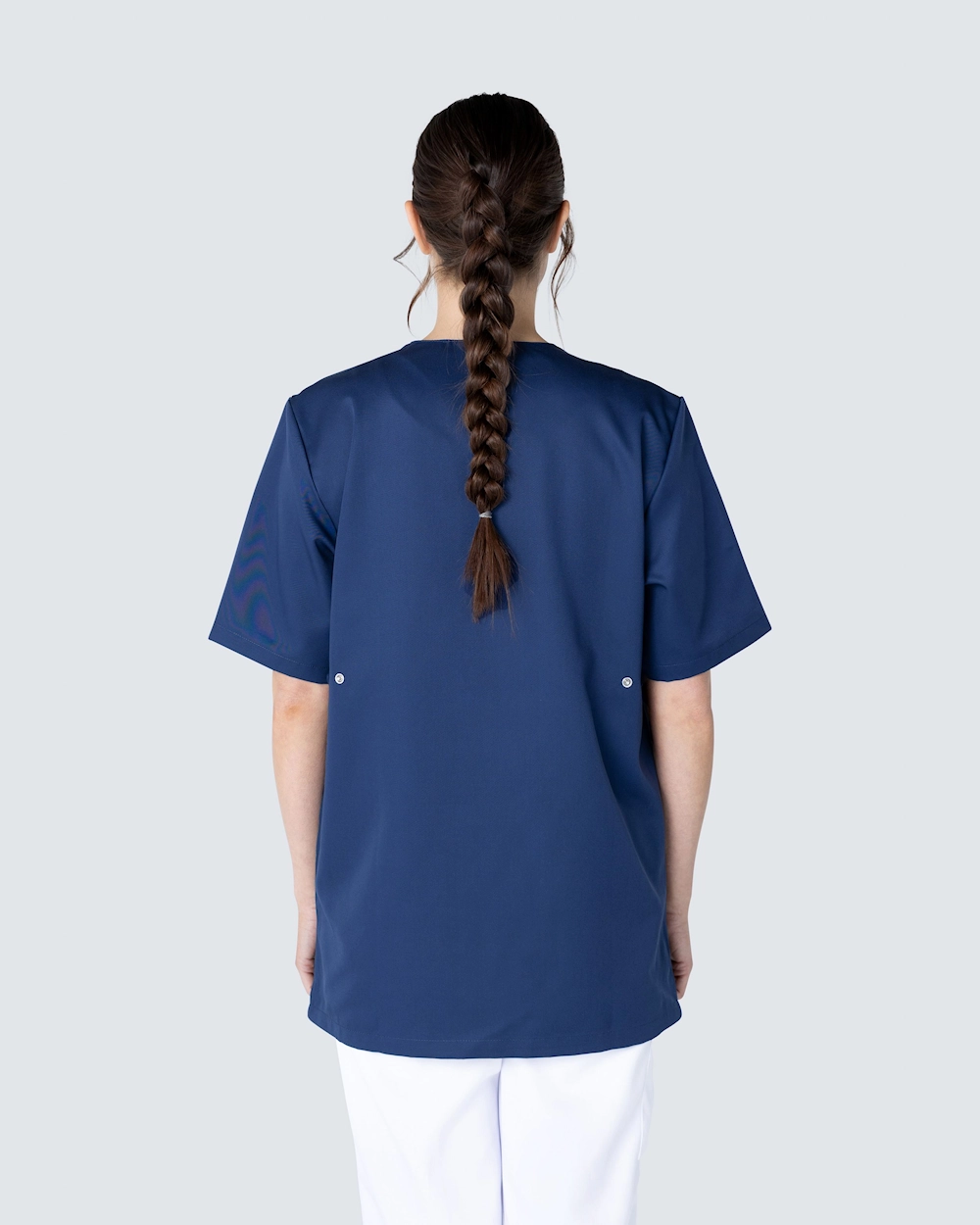 Klassisk vårdbussarong i miljövänlig Tencel som ger en sval och skön känsla på kroppen och en optimal komfort. Bussarongen är sydd i en rak unisexmodell. Med tryckknappar baktill i ryggen kan du justera midjan och få en mer figursydd passform.