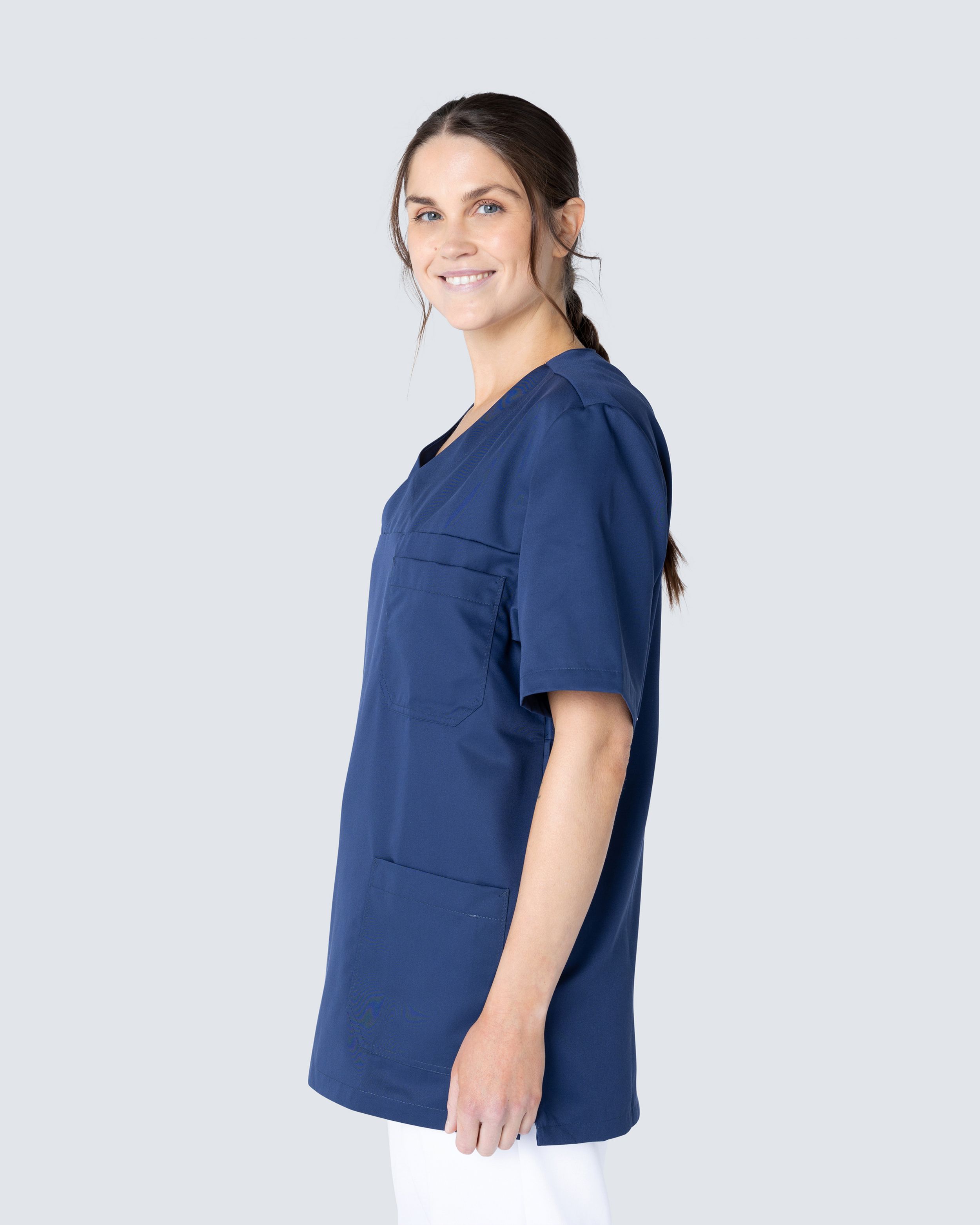I kollektionen Charisma Premium hittar du vårdkläder i en vacker färgpalett. Plaggen är tillverkade i miljövänlig Tencel tillsammans med polyester, där Tencel bidrar med en luftig och skön känsla på kroppen och polyestern hjälper till att hålla plaggen färgbeständigt. Samtliga plagg i kollektionen kan tvättas i 75°C.