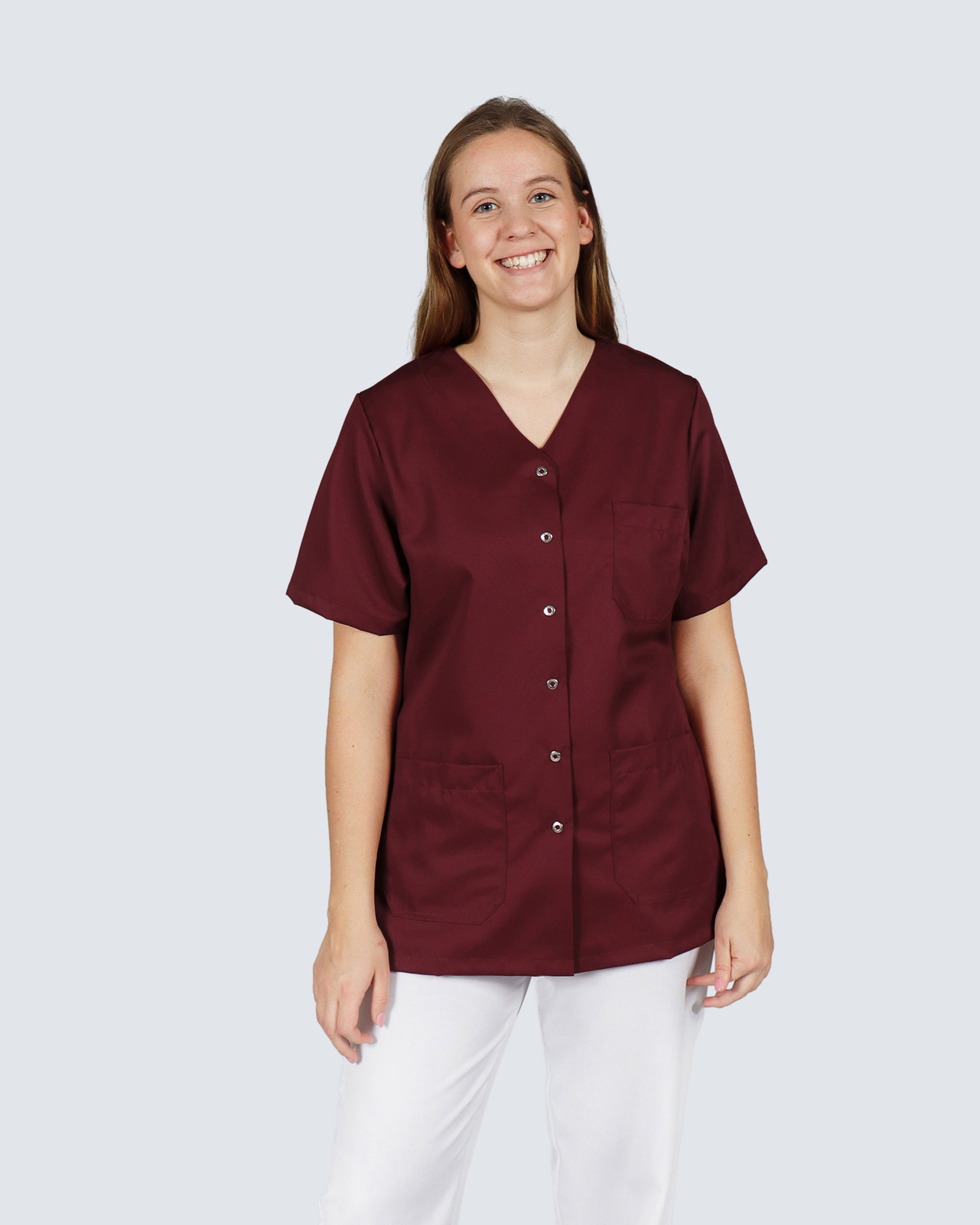 Vårdtunika i dammodell med lätt figursydd form för fin passform. Praktisk knappslå med tryckknappar - perfekt för dig med ett vårdyrke där det förekommer mycket smuts och spill och du inte vill dra tunikan över huvudet. Tunikan är tillverkad i miljövänliga Tencel som ger en skön komfort och god andningsförmåga.