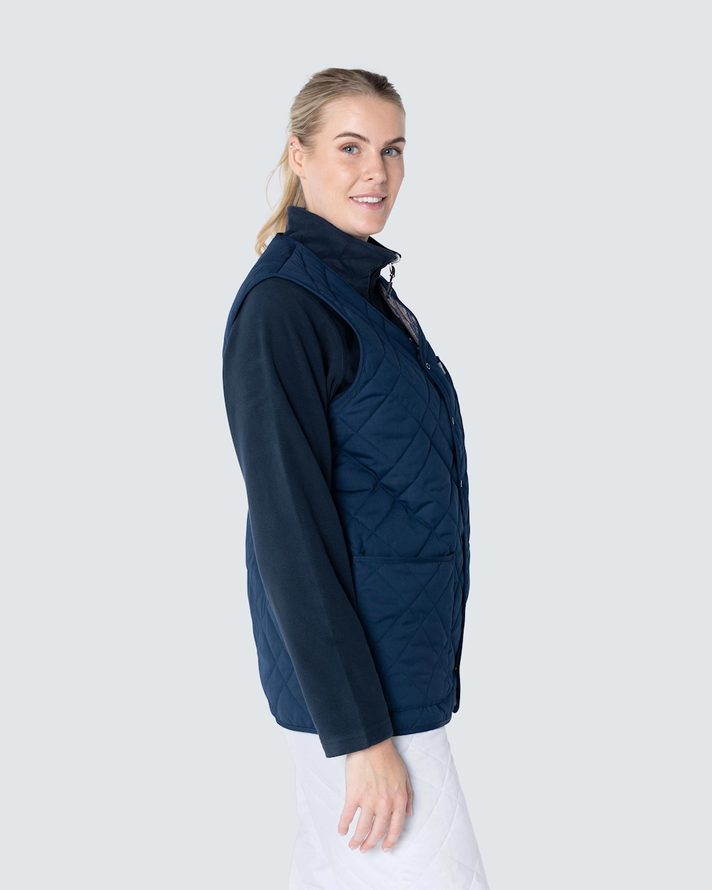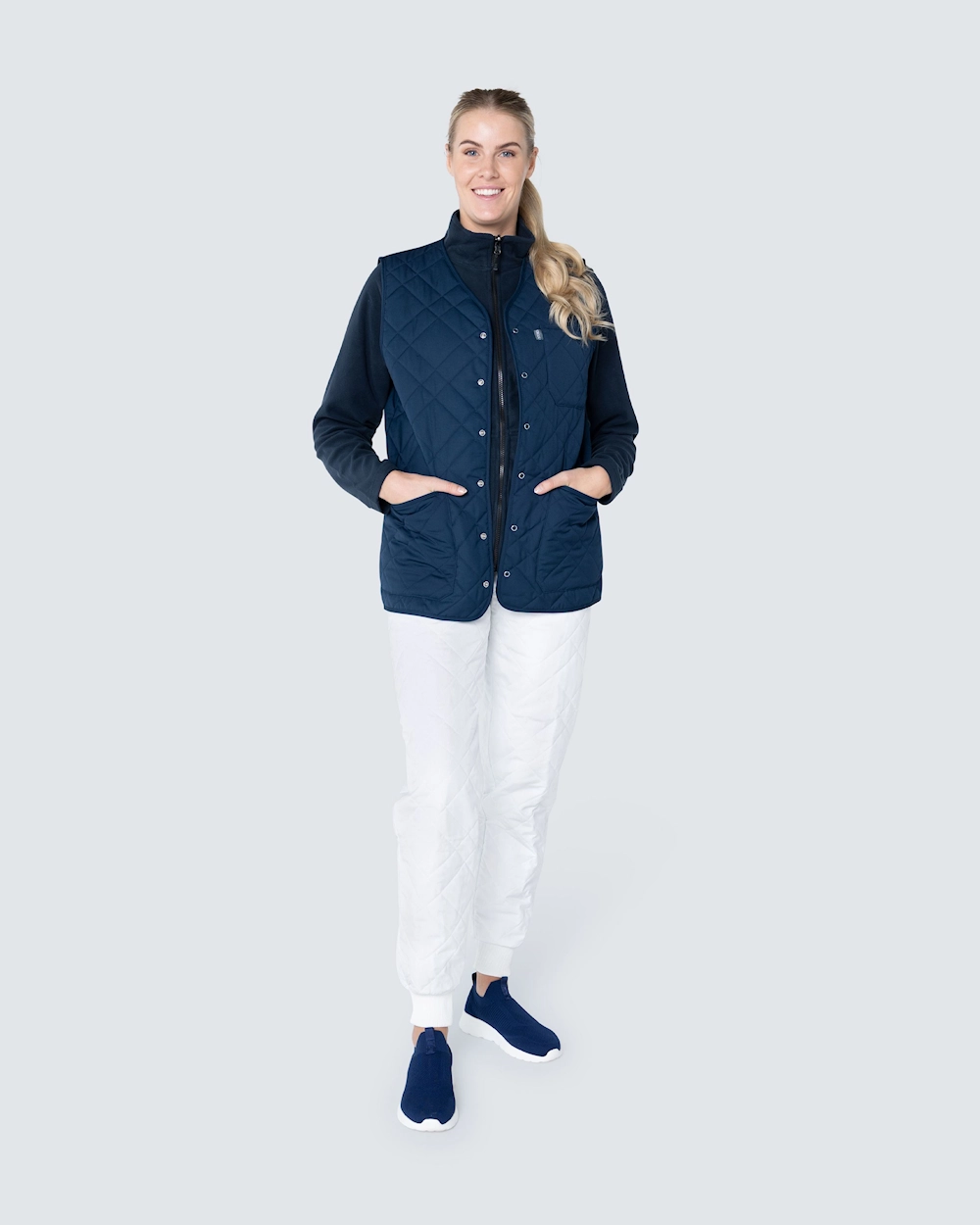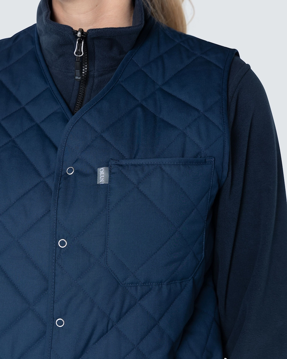 Funktionell quiltad termoväst i unisexmodell med två rymliga höftfickor och en bröstficka. Västen har stängning med smidiga tryckknappar.
