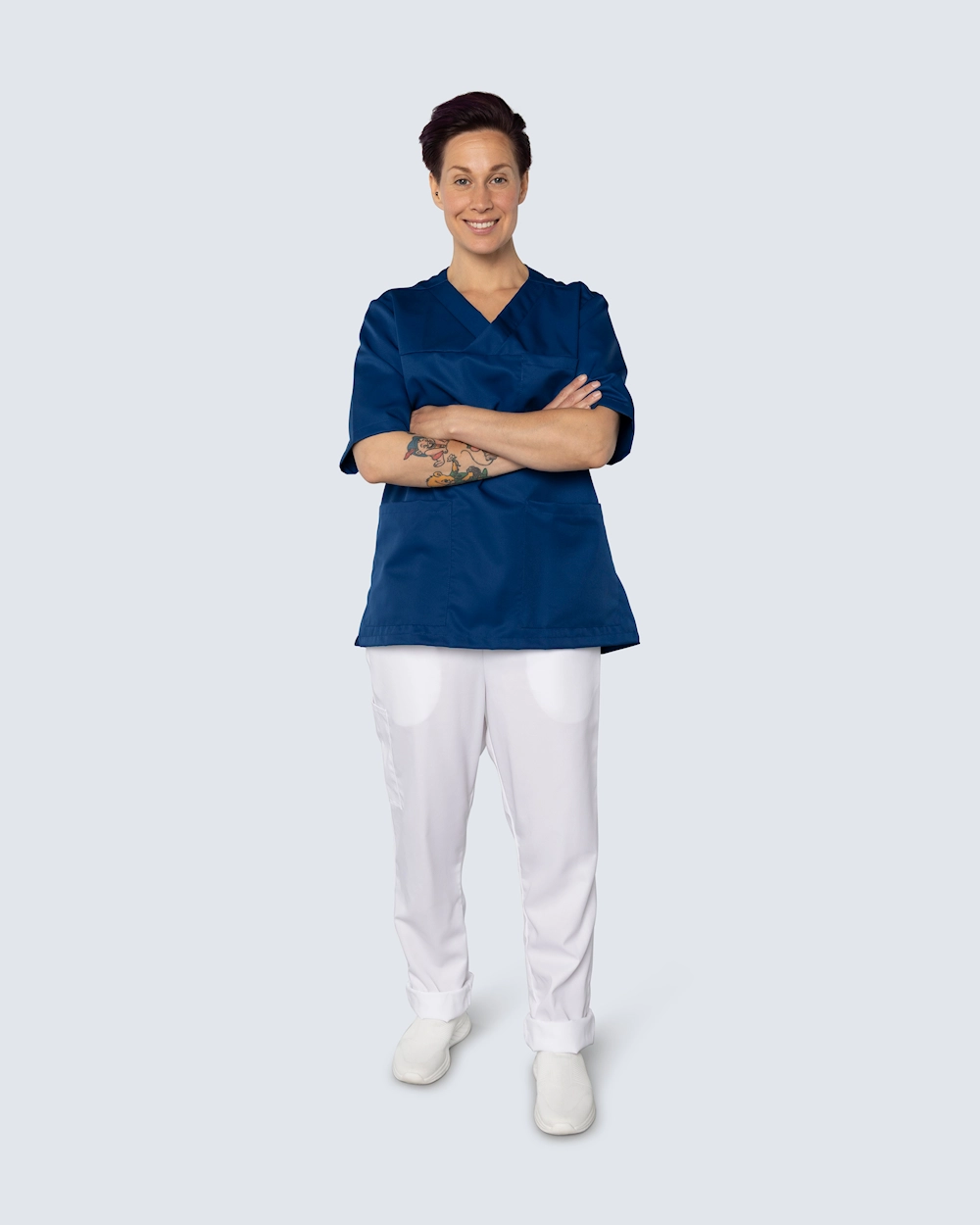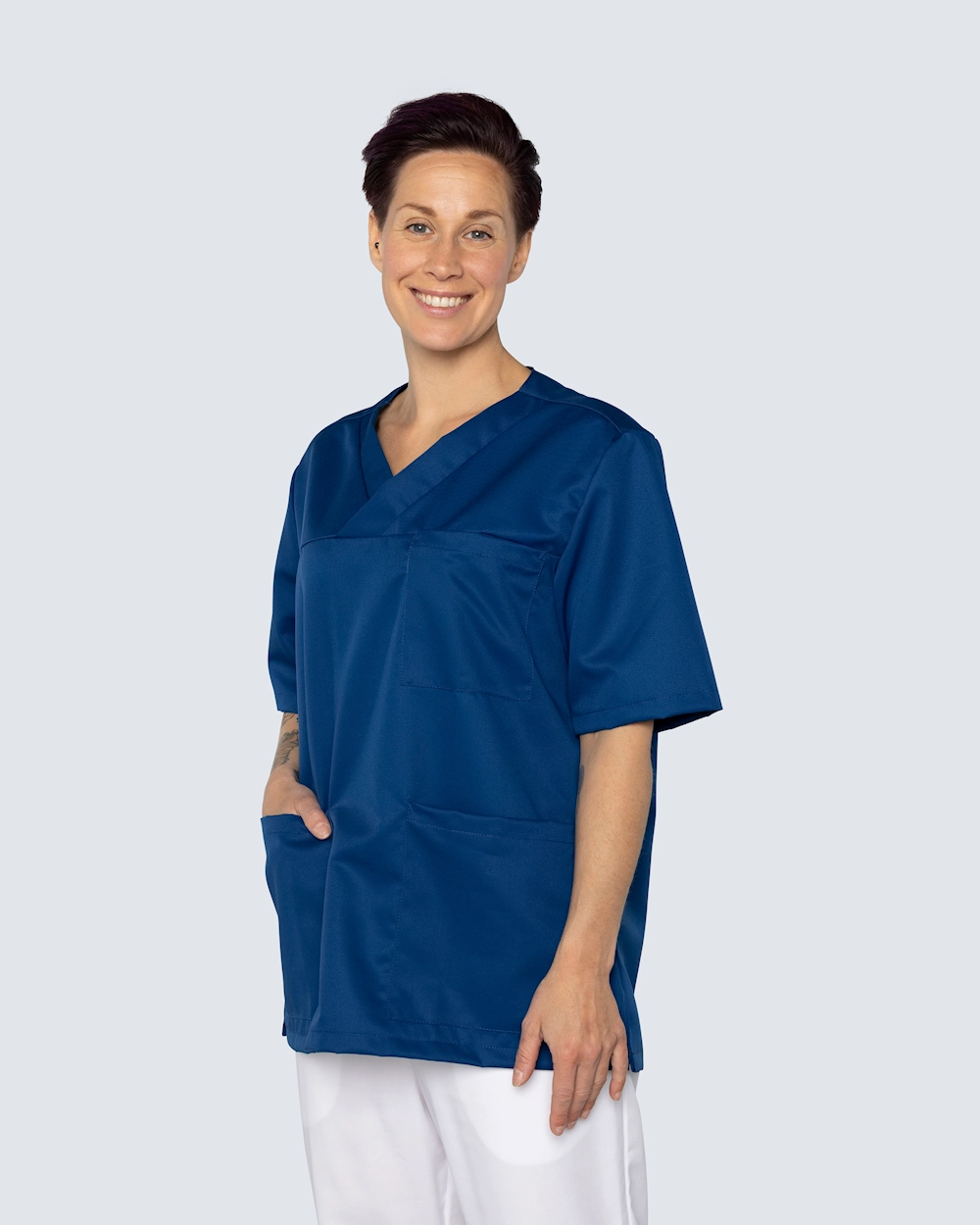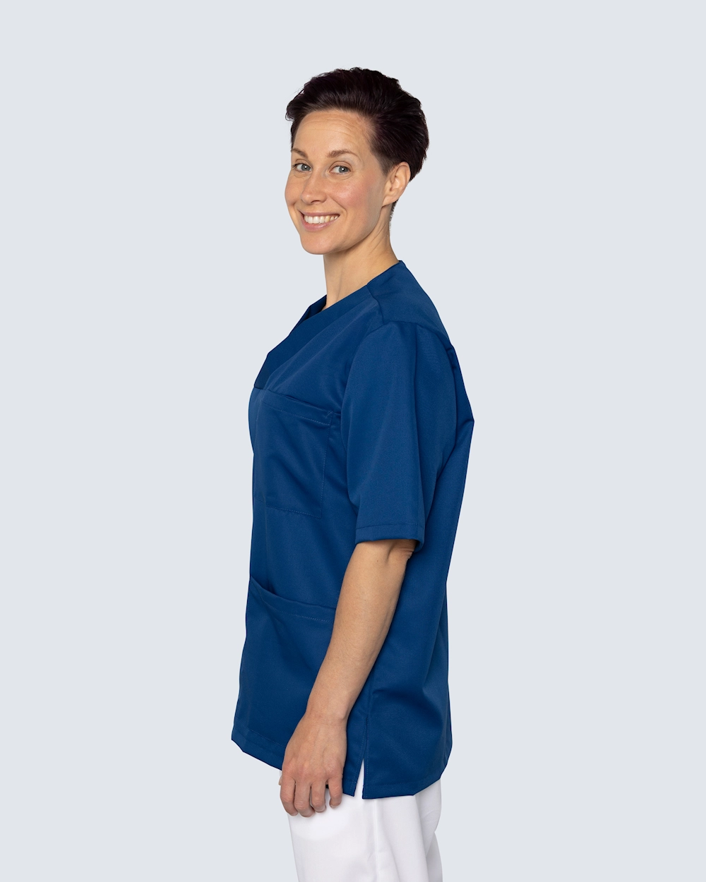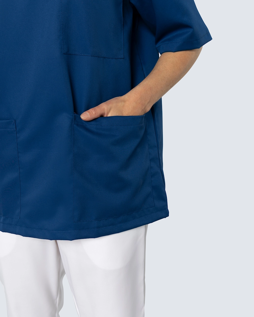 Bussarong i unisexmodell med avslappnad, rymlig passform och sportigt utseende. Plagget har en generös längd och slitsar i sidorna för optimal rörelsefrihet. Bröstficka och två rymliga höftfickor, varav en har mindre innerficka för exempelvis mobiltelefon eller mindre hjälpmedel. Bussarongen har hög andningsförmåga och är tillverkad i slitstark och temperaturreglerande Tencel, ett material som sitter behagligt mot kroppen.