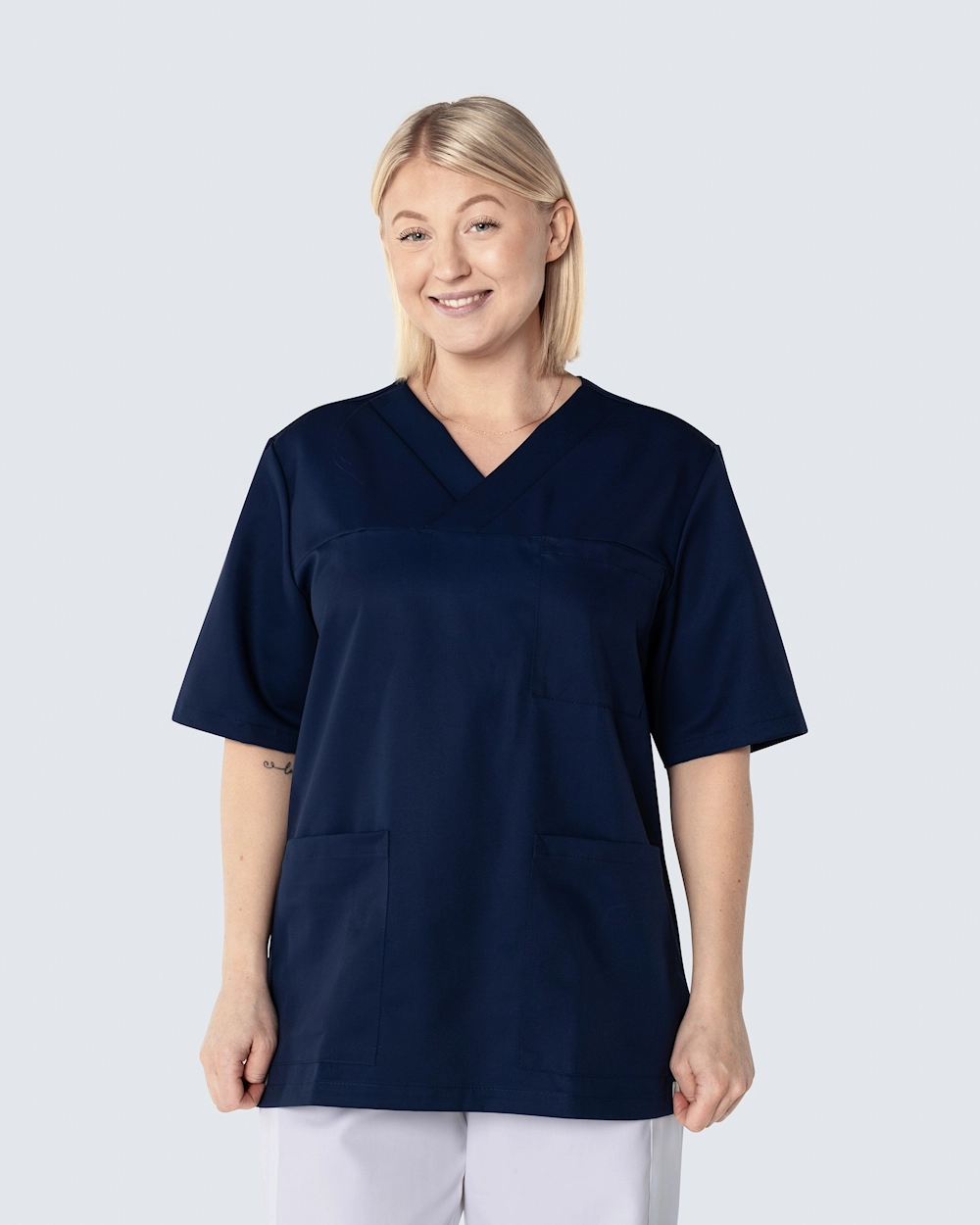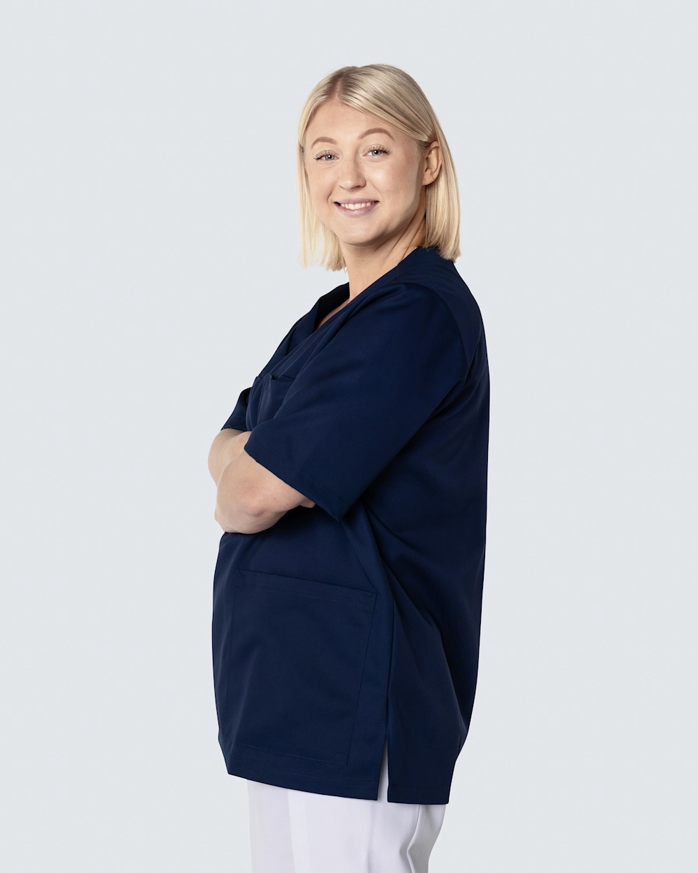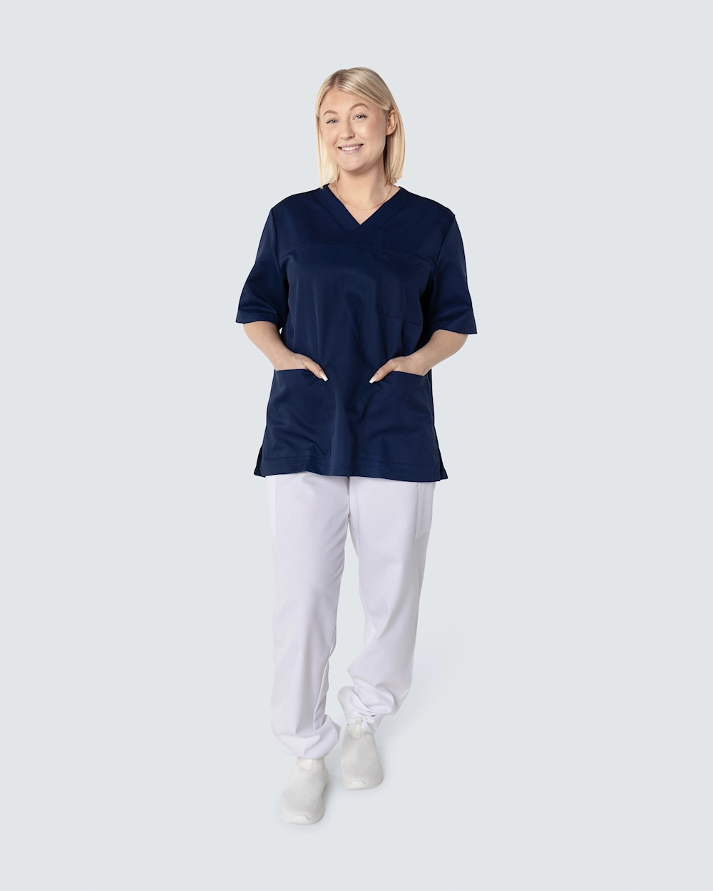 Bussarong i unisexmodell med avslappnad, rymlig passform och sportigt utseende. Plagget har en generös längd och slitsar i sidorna för optimal rörelsefrihet. Bröstficka och två rymliga höftfickor, varav en har mindre innerficka för exempelvis mobiltelefon eller mindre hjälpmedel. Bussarongen har hög andningsförmåga och är tillverkad i slitstark och temperaturreglerande Tencel, ett material som sitter behagligt mot kroppen.