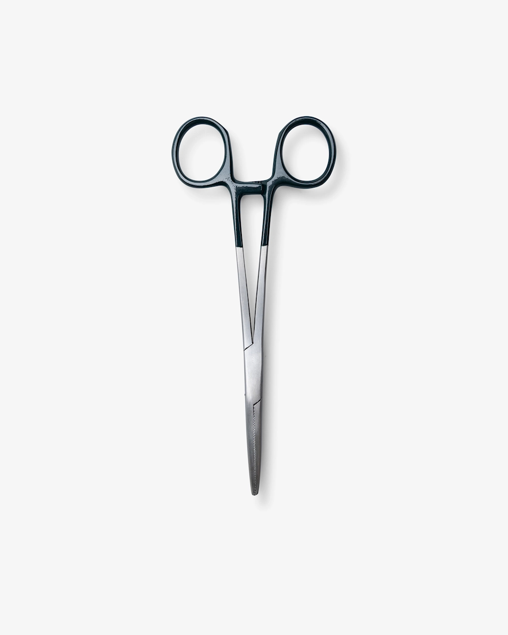 Peang-klämmare av rostfritt stål med låsanordning som gör att den kan spärras i ihopklämt läge. Ett bra verktyg för att hålla bandage och annat på plats. Denna serie av rejäla peanger är 15,25 cm långa.