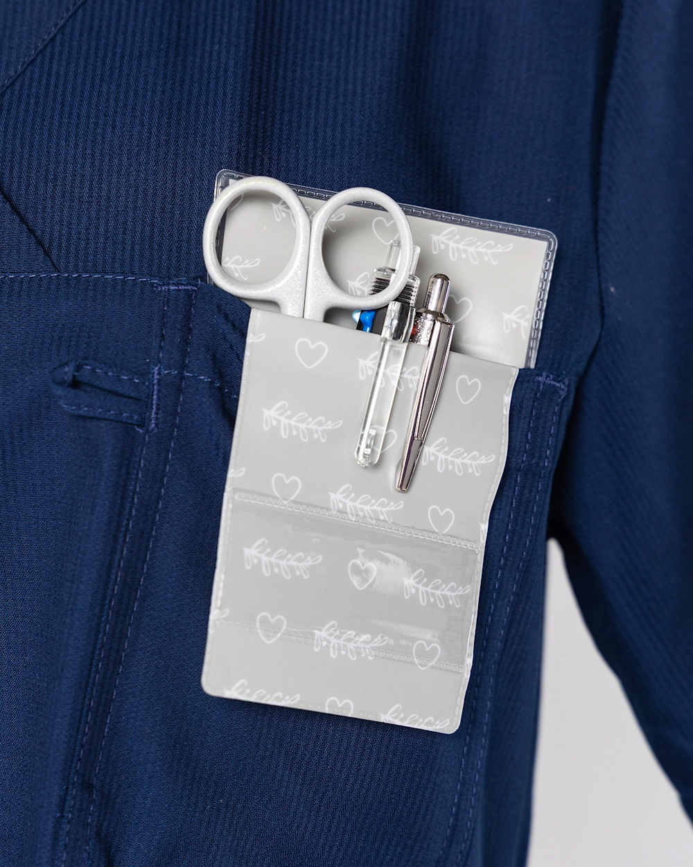 Med våra pennfickor skyddar du dina kläder mot bläck samtidigt som det blir en snygg detalj. På framsidan av pennfickan finns en plastficka med utrymme för namnettikett.