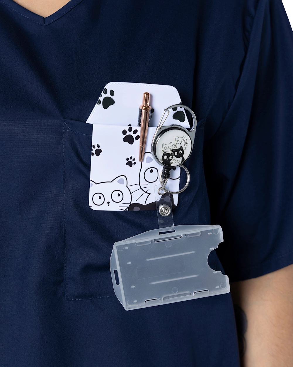 Tålig pennficka som skyddar mot bläckläckage, perfekt för vårdare. Denna hållbara accessoar kombinerar stil och säkerhet, och ger färg åt arbetsuniformen. Med många mönster och färger kan du uttrycka din personlighet utan att kompromissa funktionalitet. Perfekt för den som vill ha praktiska och snygga sjukvårdsprodukter.