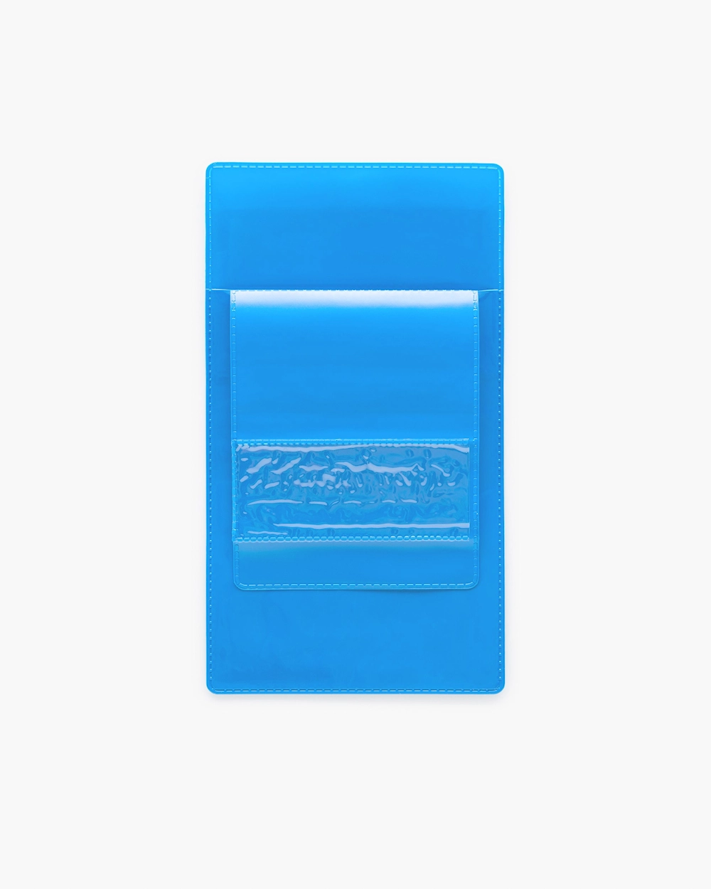 En färgglad pennficka i plast som ser till att dina pennor inte försvinner samtidigt som du skyddar dina plagg mot bläckläckage. Ett snyggt sätt att alltid ha en penna nära till hands. På framsidan av pennfickan finns en ficka för namnskylt.