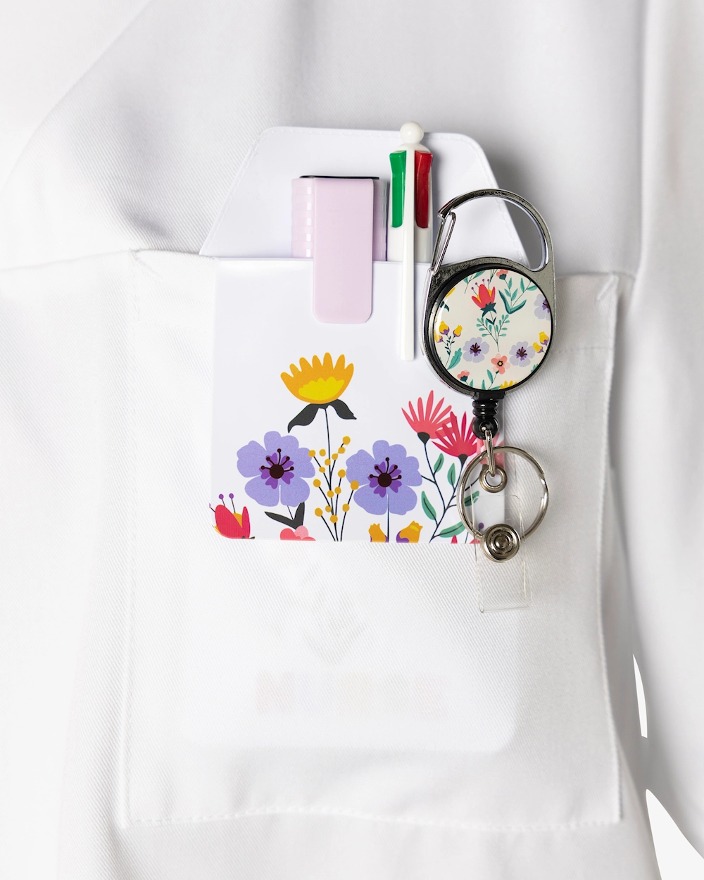 Tålig pennficka som skyddar mot bläckläckage, perfekt för vårdare. Denna hållbara accessoar kombinerar stil och säkerhet, och ger färg åt arbetsuniformen. Med många mönster och färger kan du uttrycka din personlighet utan att kompromissa funktionalitet. Perfekt för den som vill ha praktiska och snygga sjukvårdsprodukter.
