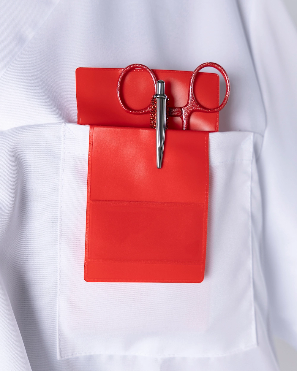 Tålig pennficka som skyddar mot bläckläckage, perfekt för vårdare. Denna hållbara accessoar kombinerar stil och säkerhet, och ger färg åt arbetsuniformen. Med många mönster och färger kan du uttrycka din personlighet utan att kompromissa funktionalitet. Perfekt för den som vill ha praktiska och snygga sjukvårdsprodukter.