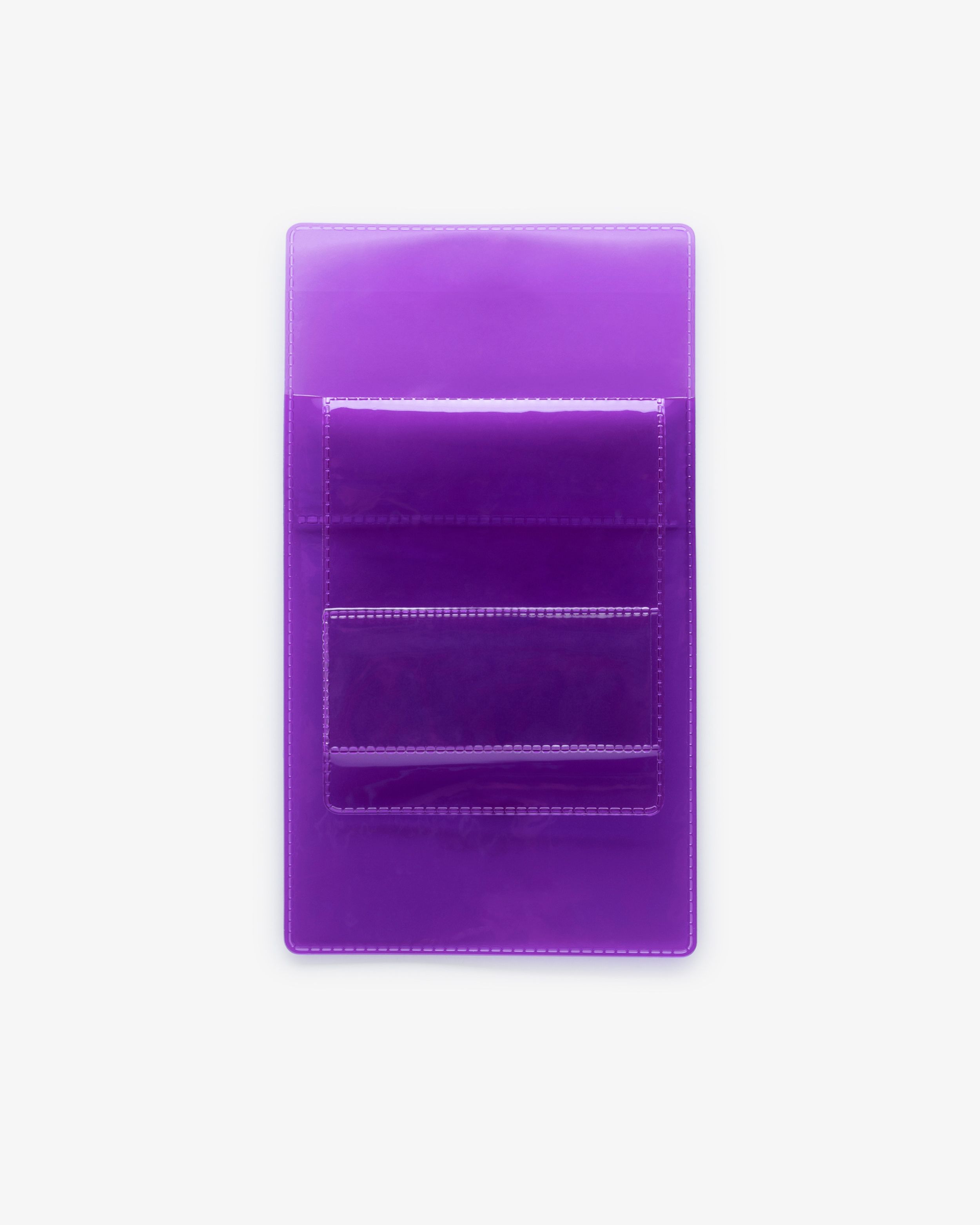 En färgglad pennficka i plast som ser till att dina pennor inte försvinner samtidigt som du skyddar dina plagg mot bläckläckage. Ett snyggt sätt att alltid ha en penna nära till hands. På framsidan av pennfickan finns en ficka för namnskylt.