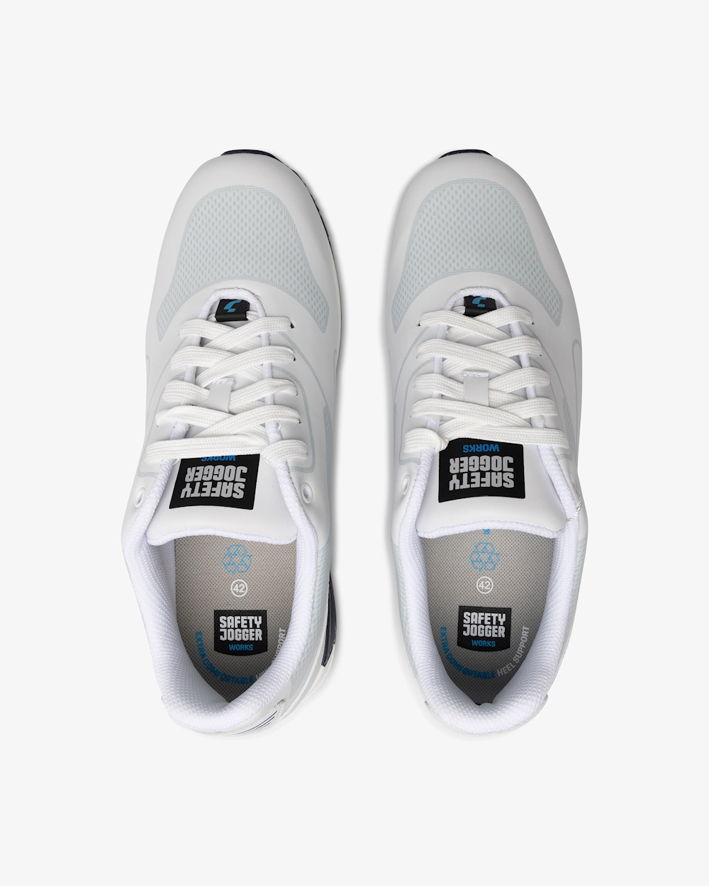 Dessa moderna sneakers från Safety Jogger är utrustade med ESD-skydd för att motverka statiska urladdningar. Sneakerns uttagbara fotbädd kombinerad med en memory foam-innersula ger personlig komfort, vilket underlättar långa arbetsdagar. Halksäker sula säkerställer stabilitet även på hala ytor. Tillverkade i veganskt material.